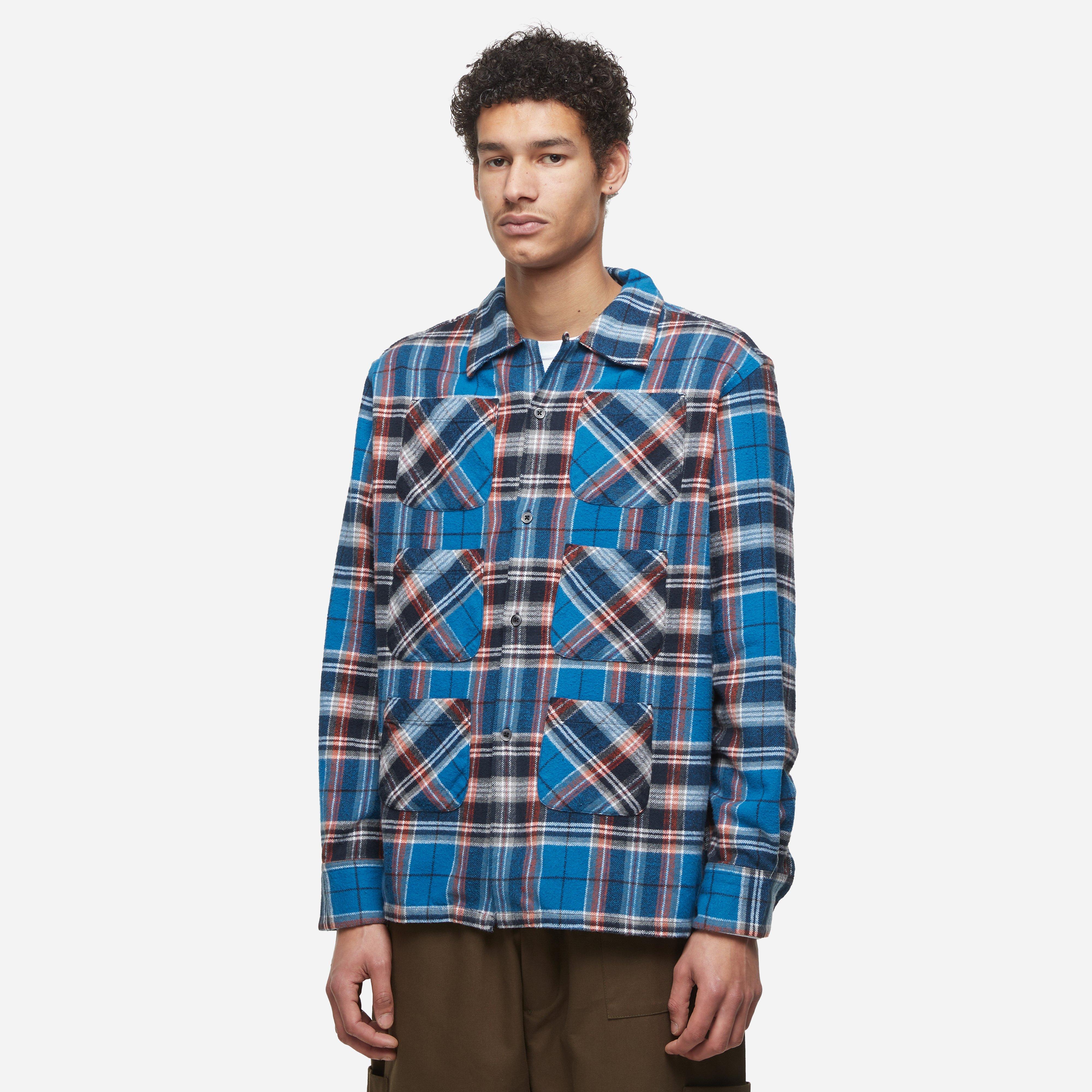 This Shirt adopts a soft flannel twill material - a richly textured fabric made in India and distinguished by six front pockets. Blue - 100% cotton - Six front pockets - Button closure - Made in India - Relaxed fit, take your normal size - Model is 6'4" and wears a size medium.