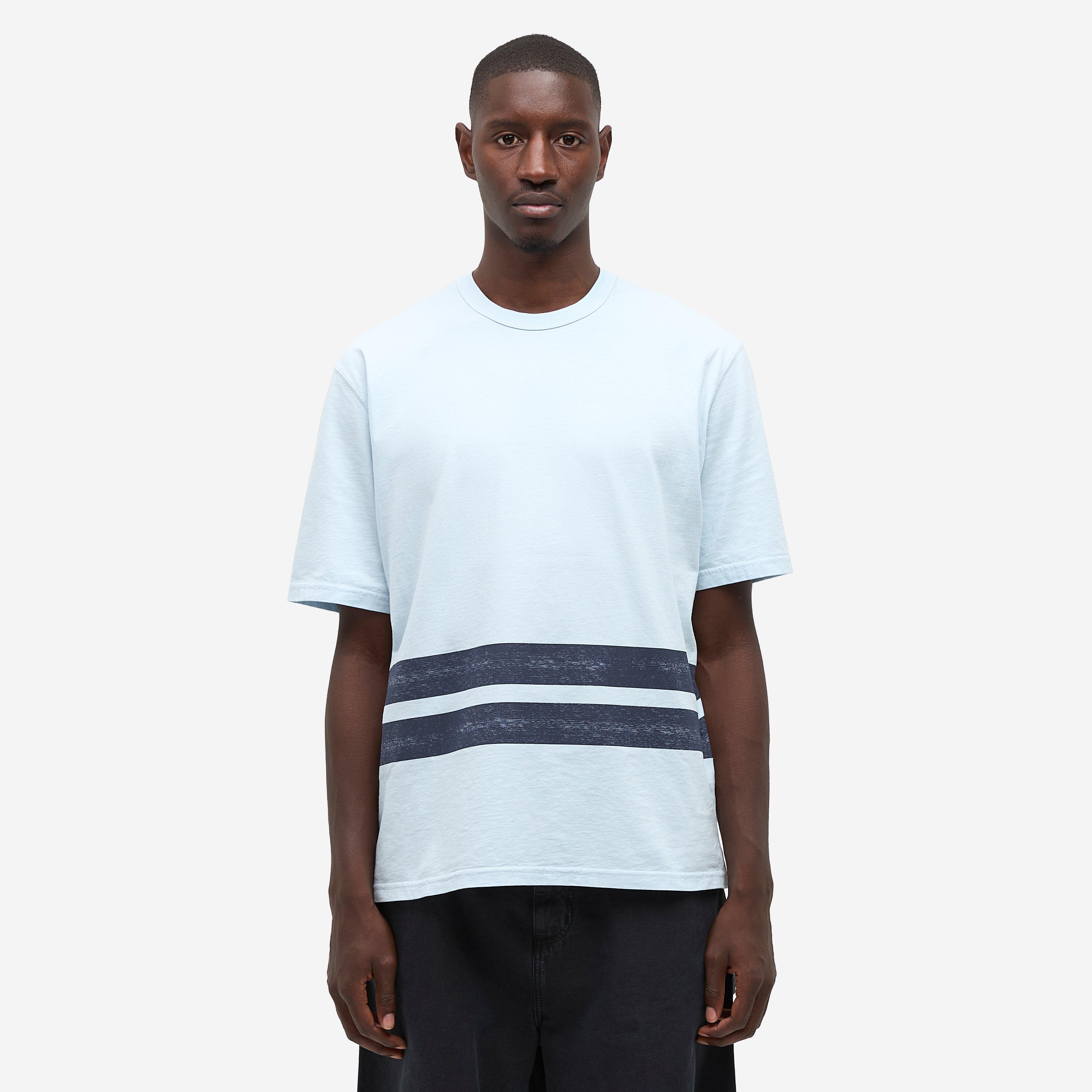 Blue – 100% organic cotton – Oversized fit – Combed fabric – Printed bands – Garment dyed – Typographic print – Model is 6’1’’ and wears a size medium.
