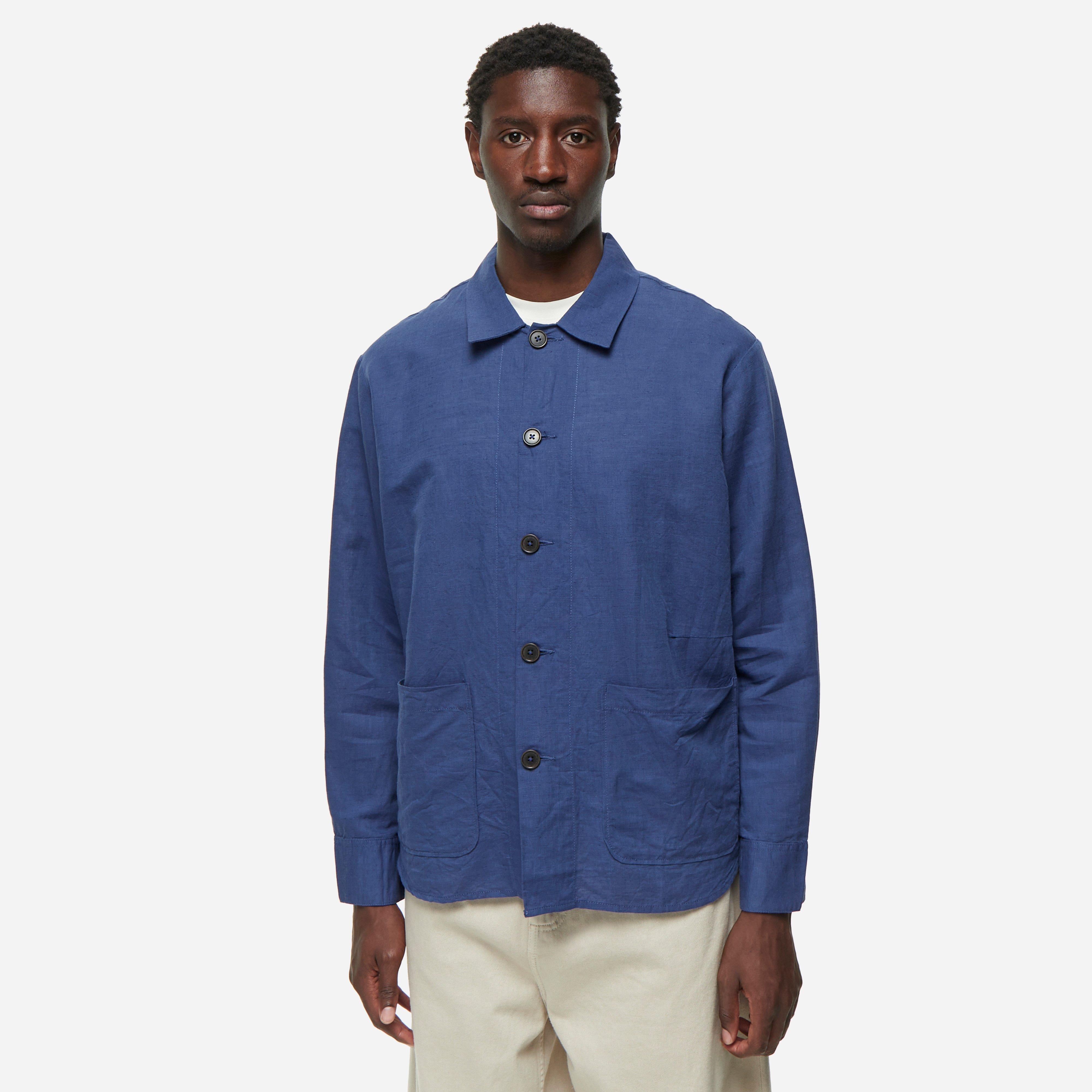 Blue – 100% organic cotton – Loose cut – Straight hem – Patch pockets – Asymmetric chest pocket – Unbuttoned cuffs – Model is 6’1’’ and wears a size medium.