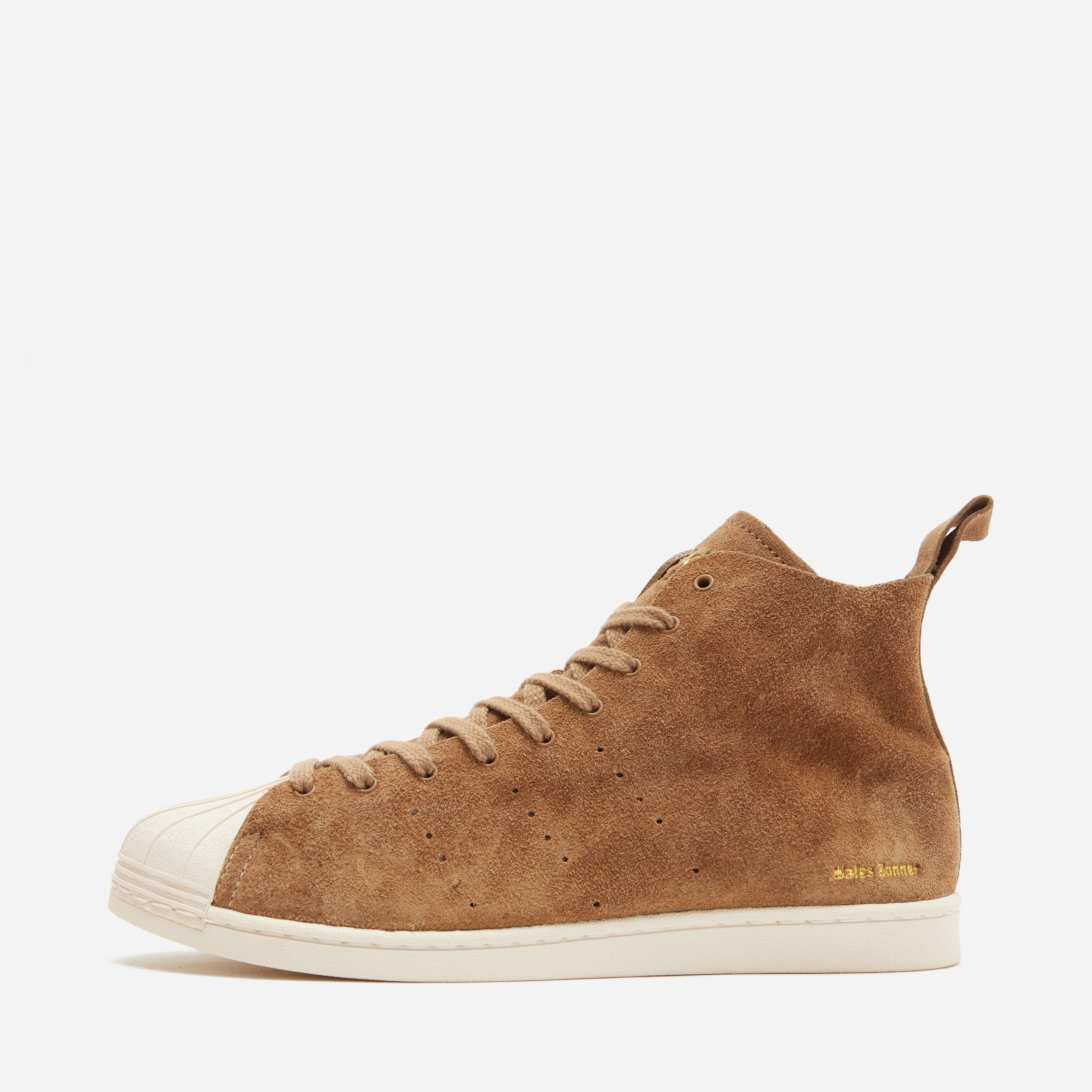 The latest collection is a visionary blend of sport and soul, with pieces taking nautical influence. Wales Bonner's Superstar stays true to the designer's legacy of elevated details and unexpected touches, with premium suede uppers and perforated three stripes on the upper. Brown - Suede upper, rubber sole - Shell toe - Gold co-branding - Regular fit, take your normal size - Style code: JR0217