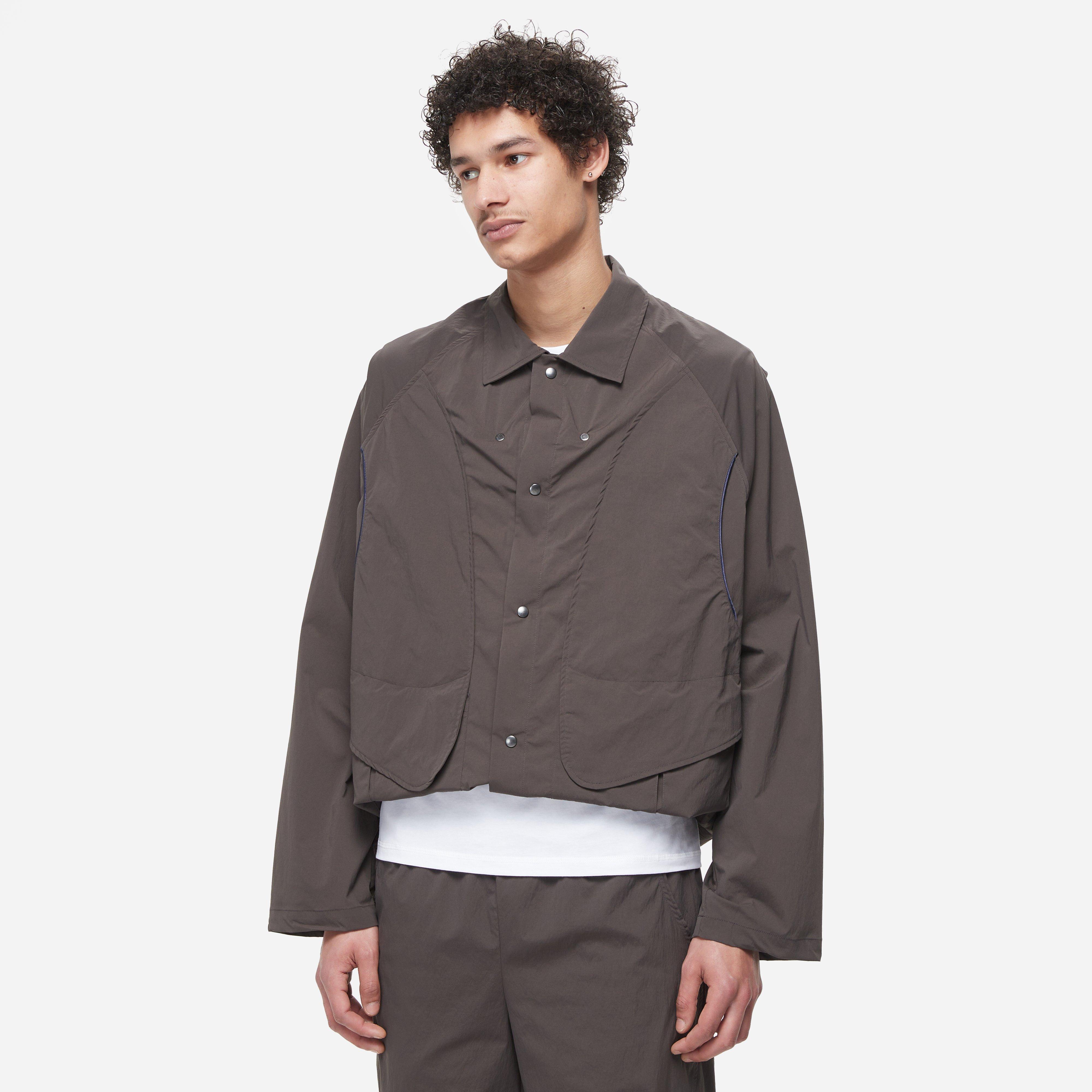 Guided by the concept 'New Utility', AFFXWRKS' Adaptive Coat is a lightweight long coat in a soft crease water-repellent stretch with four front pockets and transformable length function.