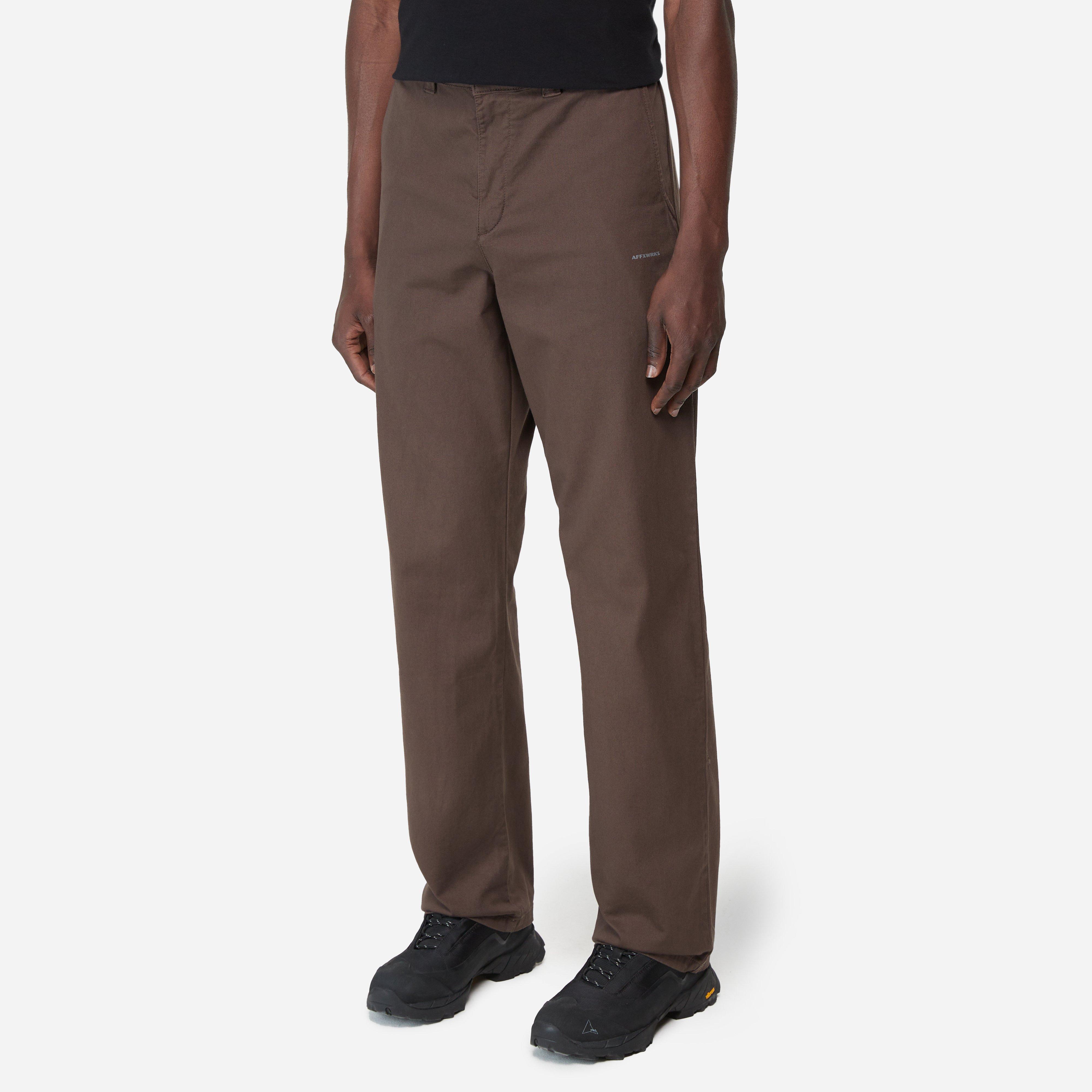 The WRKS Pant is a refined utility trouser within the label's fluid AW23 collection. Key characteristics include a straight-leg fit, 4-pocket set up and build from object-dyed cotton duck. Brown - 100% cotton - Object dyed - Articulated side pocket - Rear angled pocket - Rear darts - Front brand print - Straight leg fit, take your normal size - Model is 6'1" and wears a size medium - Waist size guide (in.) - S=33, M=34.6, L=36.2, XL=37.8.