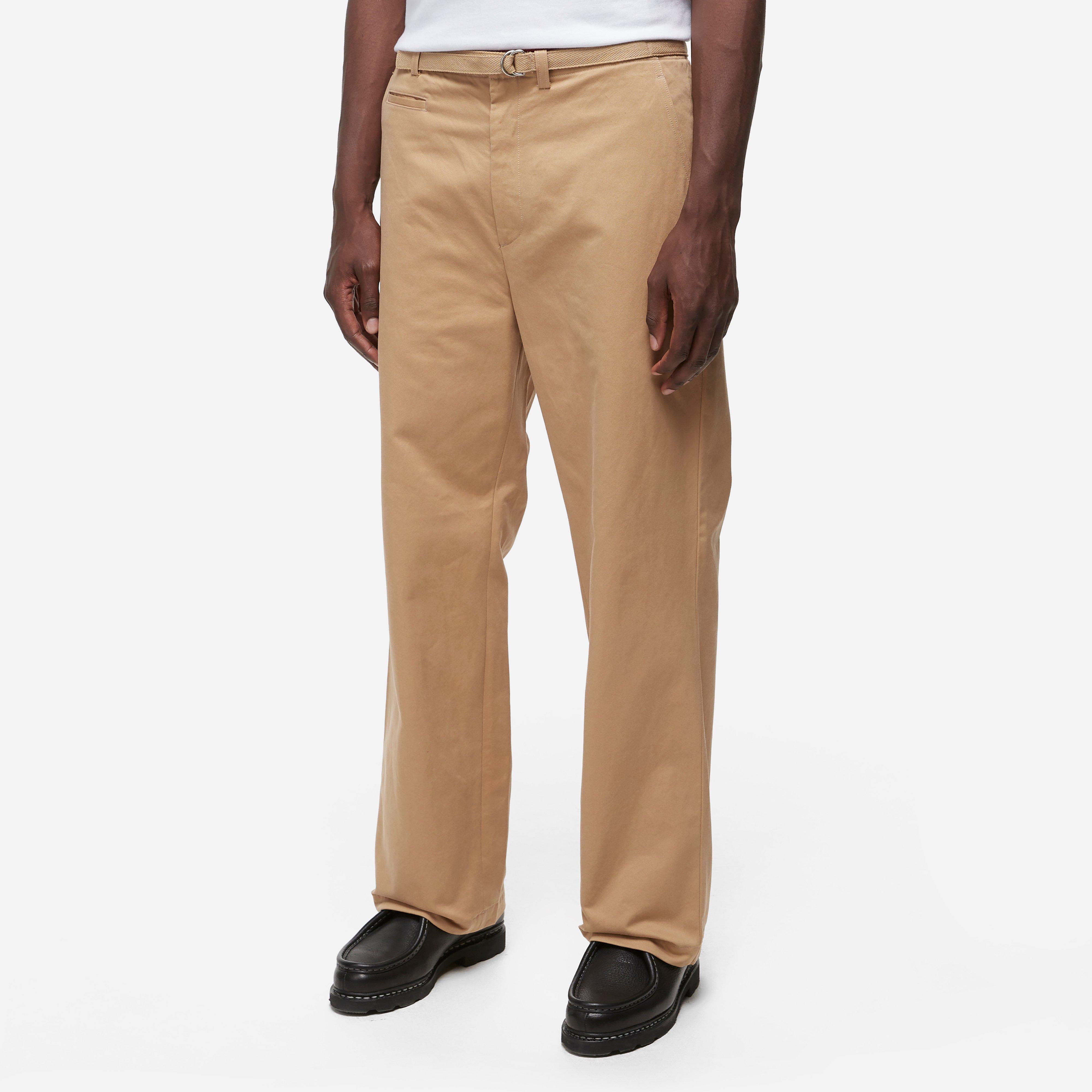 These chinos are crafted from triple twisted Finx Cotton that undergoes repeated washing and kneading creating a luxurious, naturally worn finish. Camel - 100% cotton - Regular fit - Garment wash - Cropped length - Waist adjust belt - Model is 6'2" and wears size medium.