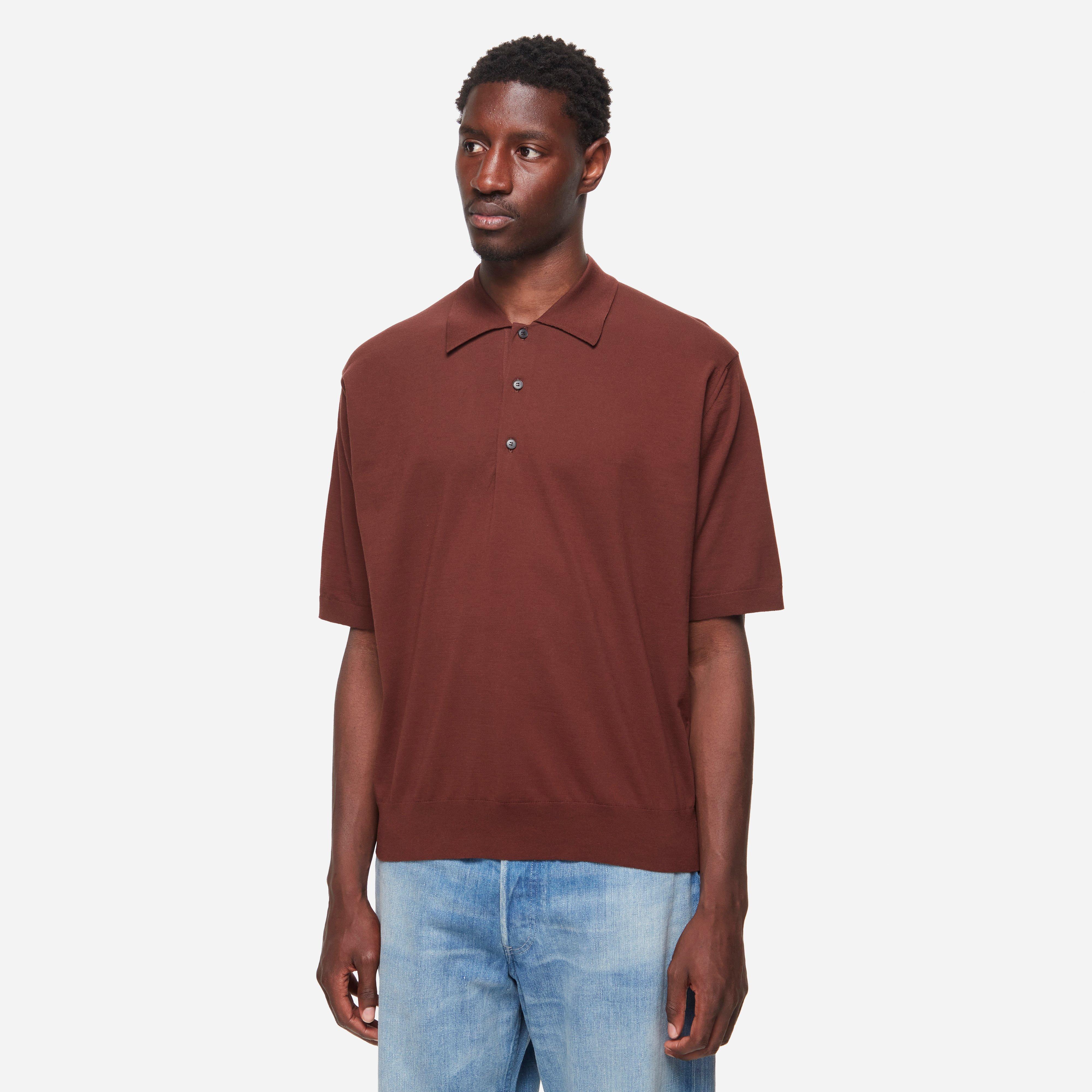 The High Gauge Polo is crafted from dense extra-long cotton obtained from Caribbean Sea Island cotton providing a tight knit structure. Brown - 100% cotton - Relaxed fit - 3 button placket - Model is 6'1" and wears a size 5.