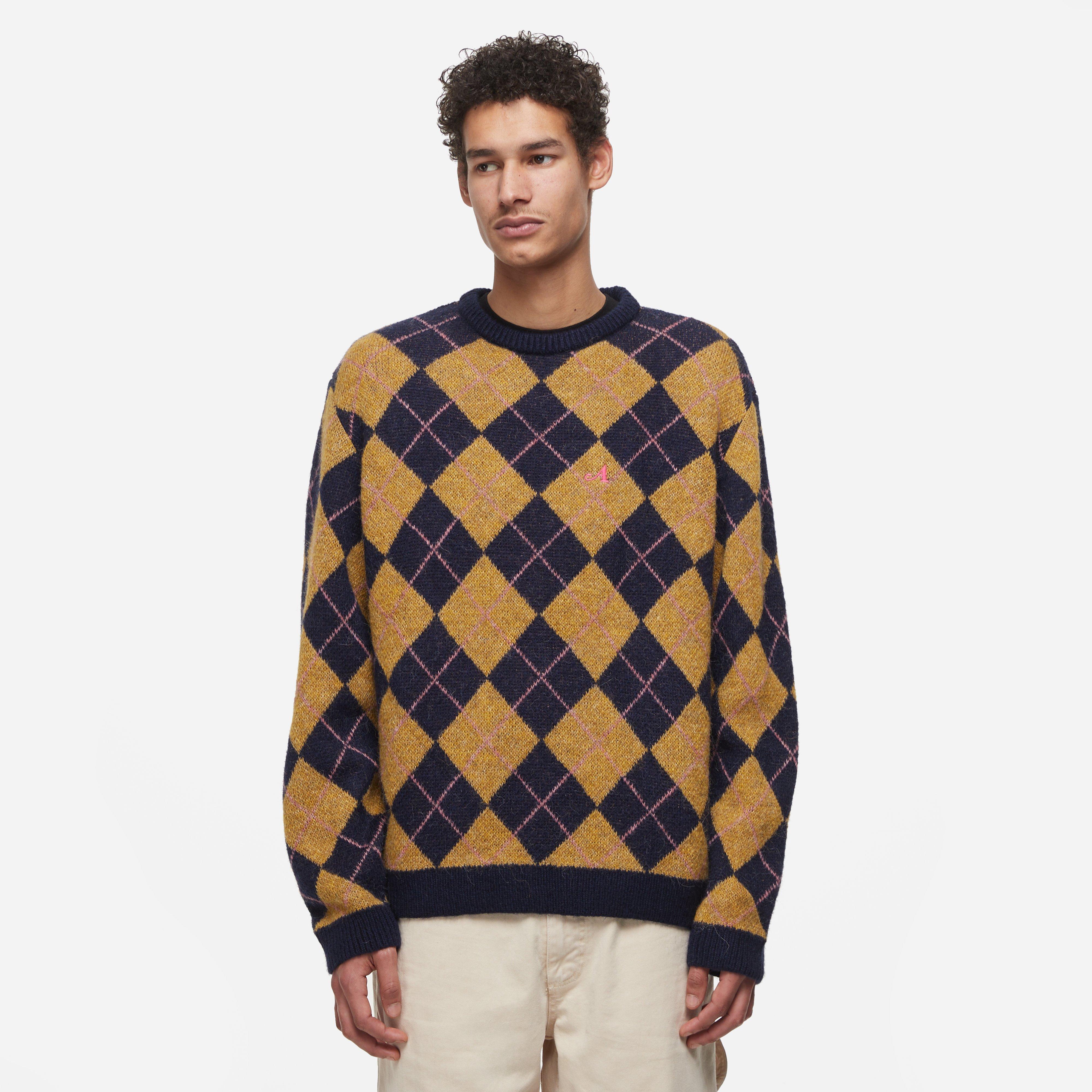 Awake's NY's bold casual look touches on the diversity of New York - AW23's mohair-blend Sweater has a colourful argyle pattern.