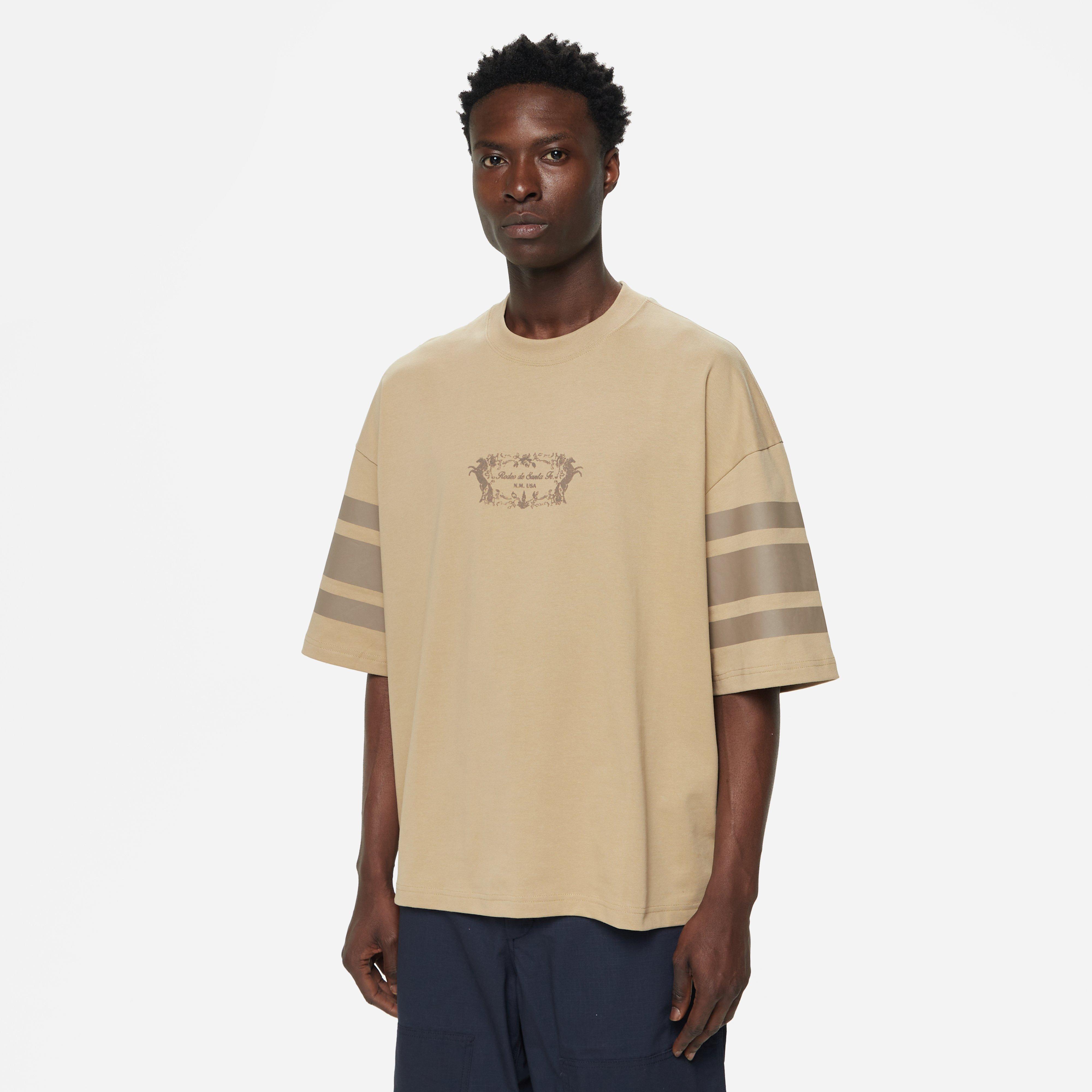 The Camino Entrada T-Shirt hails from the label’s Index + Archives collection. Brown – 100% cotton – Boxy fit – Ribbed neckline – Neutral stripes – Graphic prints – Model is 6’1’’ and wears a size medium.