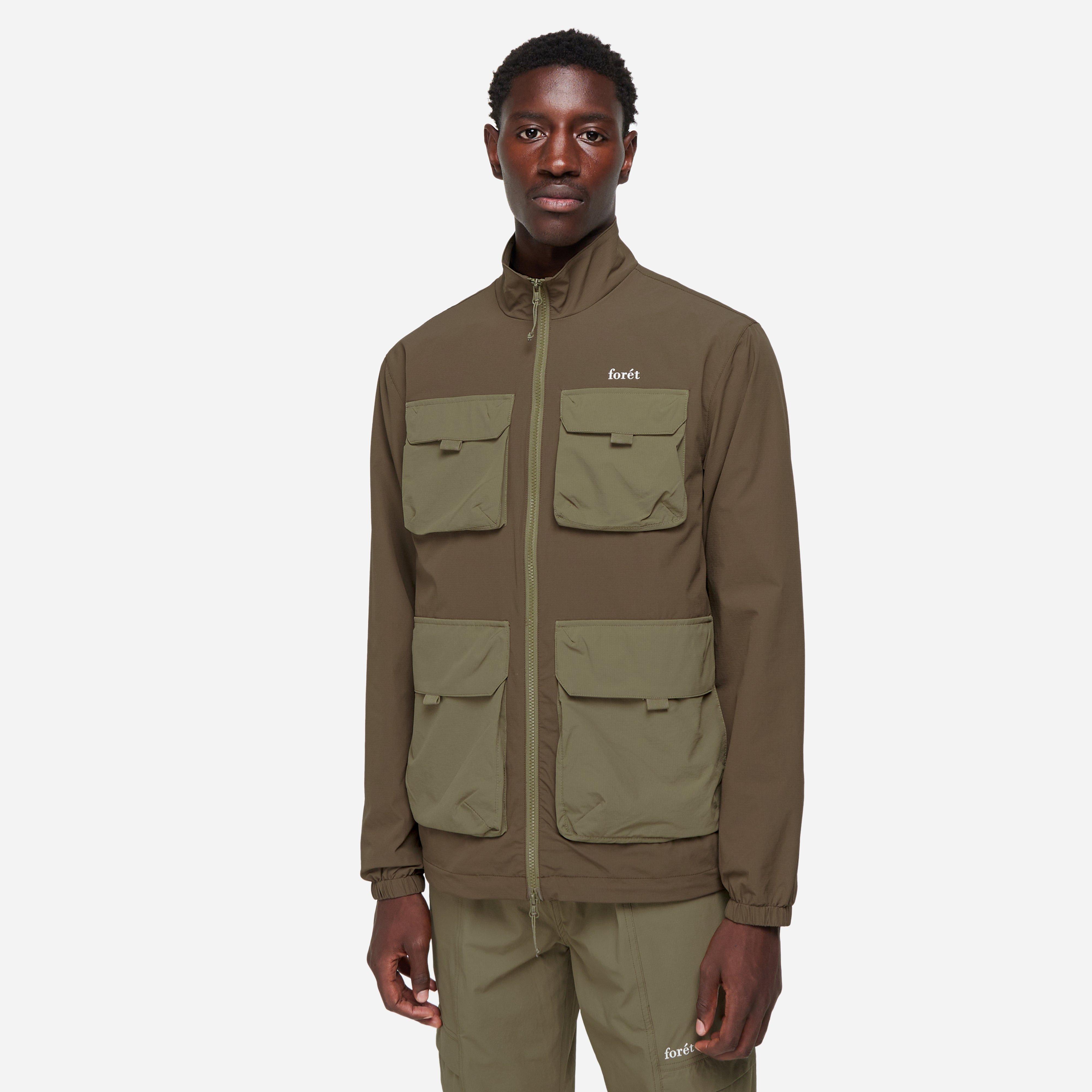 foret's Sizzle Jacket has a lightweight build and immediately captures attention with four exaggerated flap pockets produced in another earthy tone for a slight contrast and to continue the muted, natural look.