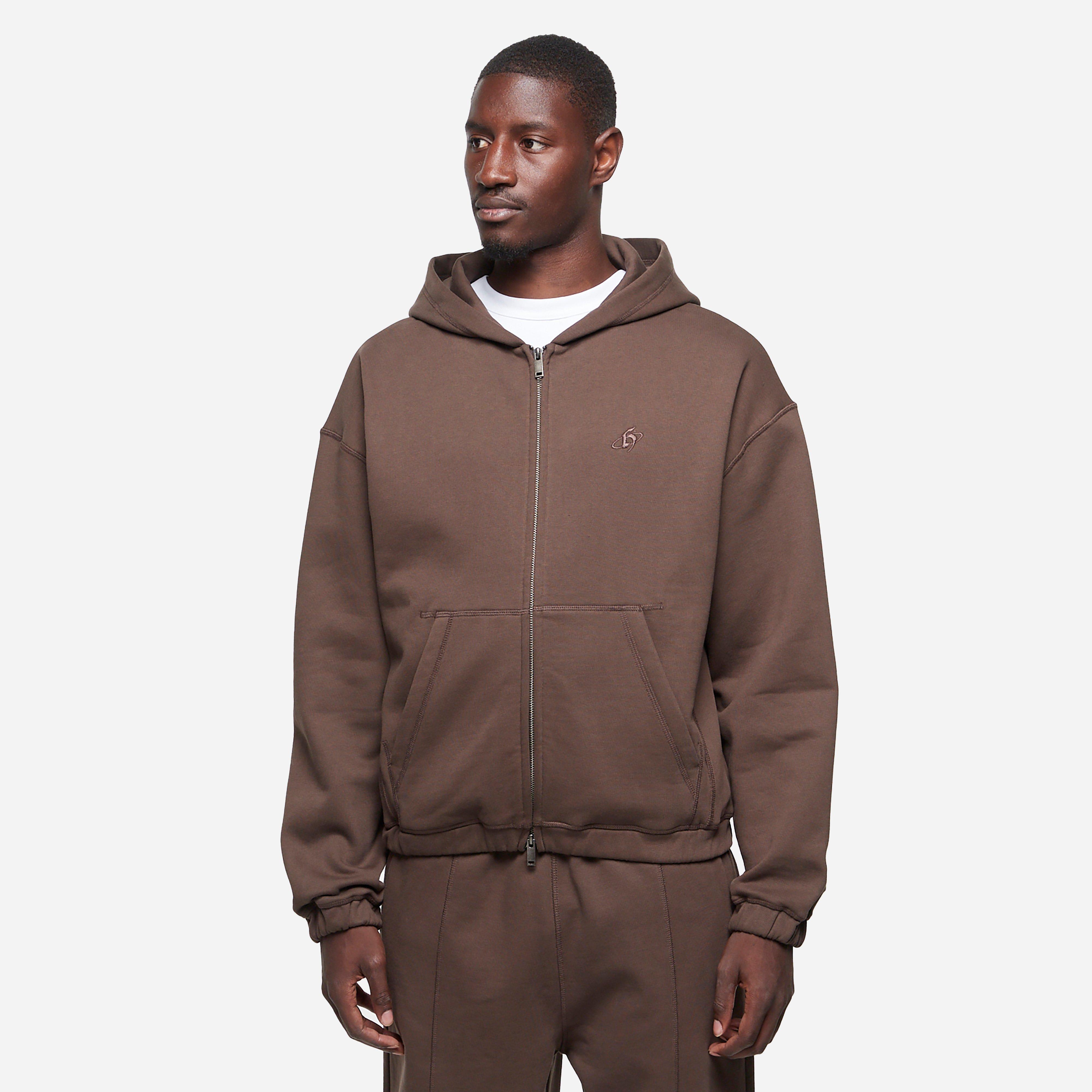 Brown - 85% BCI cotton, 15% polyester - 435gsm - Boxy fit - Acid wash - Model is 6'1" and wears a size medium