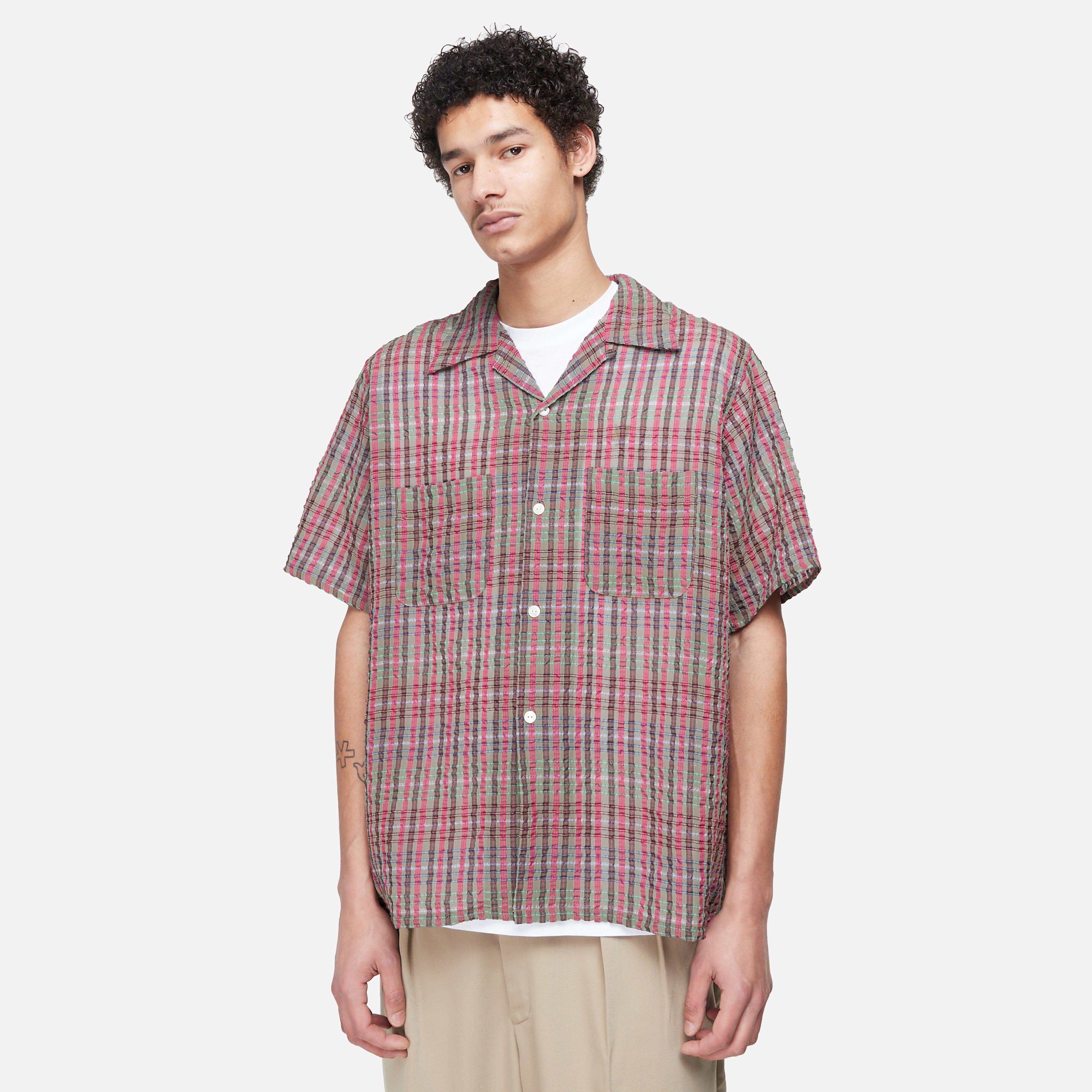 Needles' Shirt is meticulously crafted in Japan using a breathable Chiffon Seersucker plaid in a roomy cut for a refreshing item typical of spring-summer.