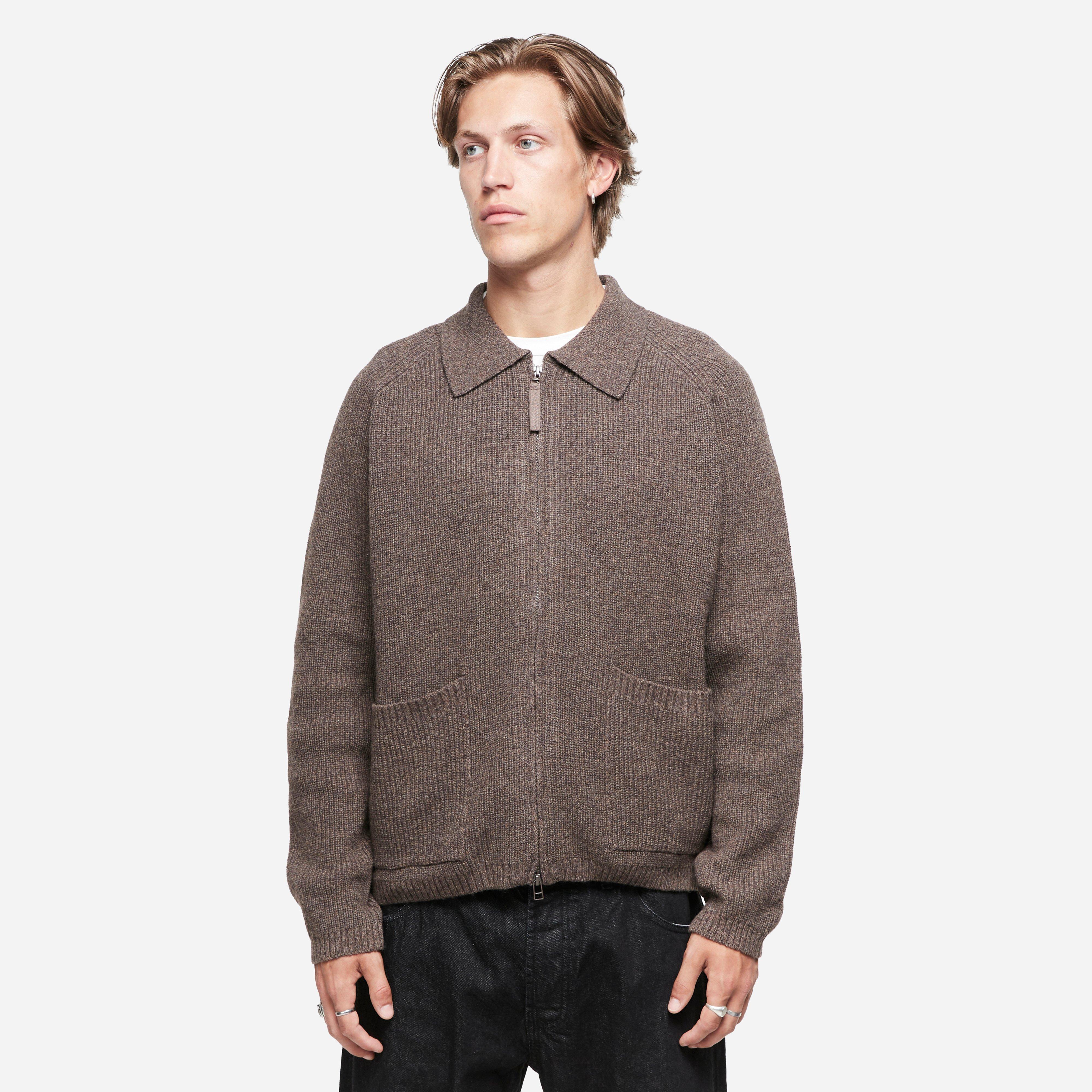 Brown - 70% recycled wool, 26% recycled polyamide, 4% other fibres - 2 way zip - Relaxed fit - Model is 6'2.5" and wears a size medium.