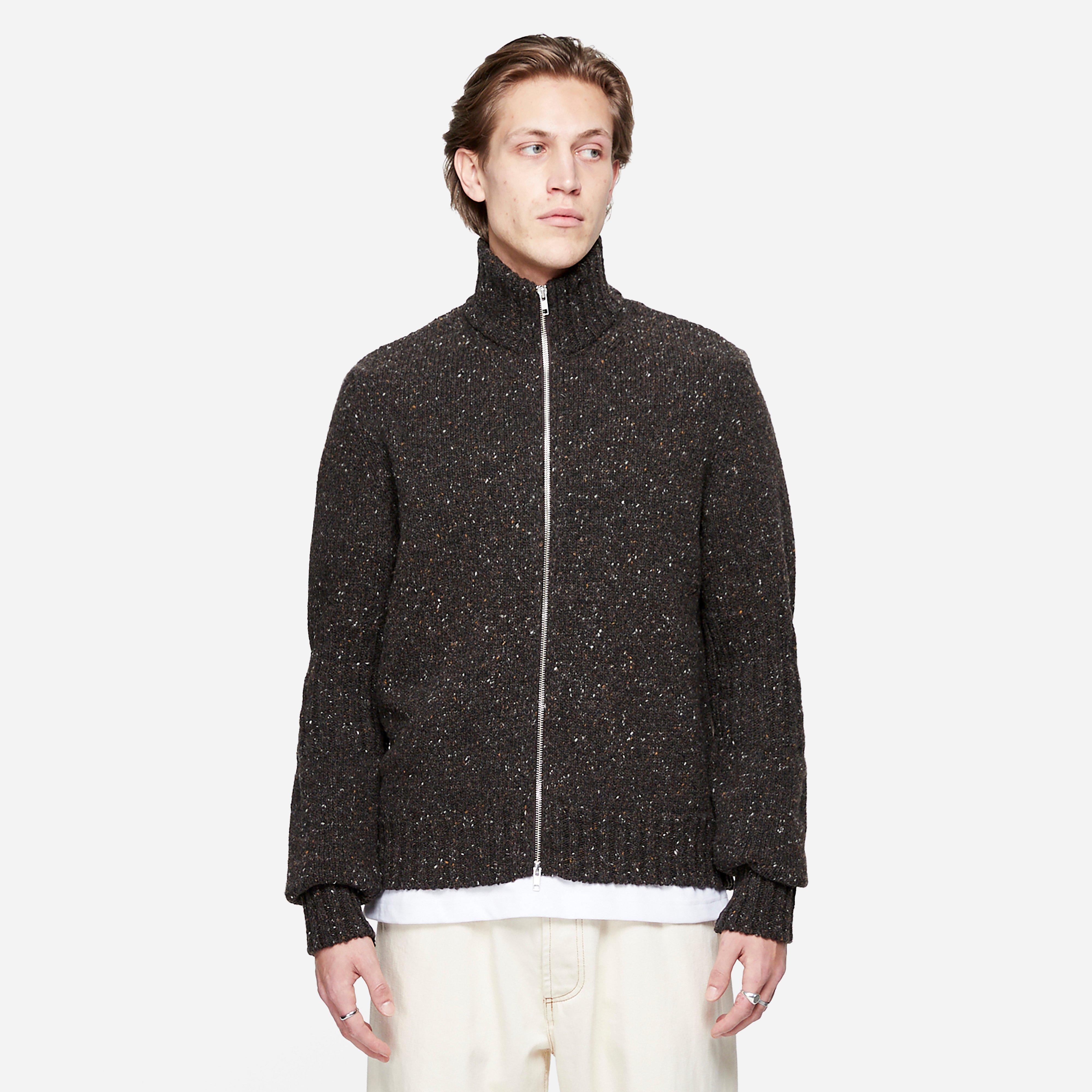 This Nova Zip Cardigan channels the spirit of the brand's first collections from Autumn-Winter 1996. Brown - 80% Merino wool, 20% polyamide - Donegal yarn - Rib knit elbow detail - 2 way YKK zip - Regular fit - Rib knit cuffs, cuffs & hem - Model is 6'2.5" and wears a size medium
