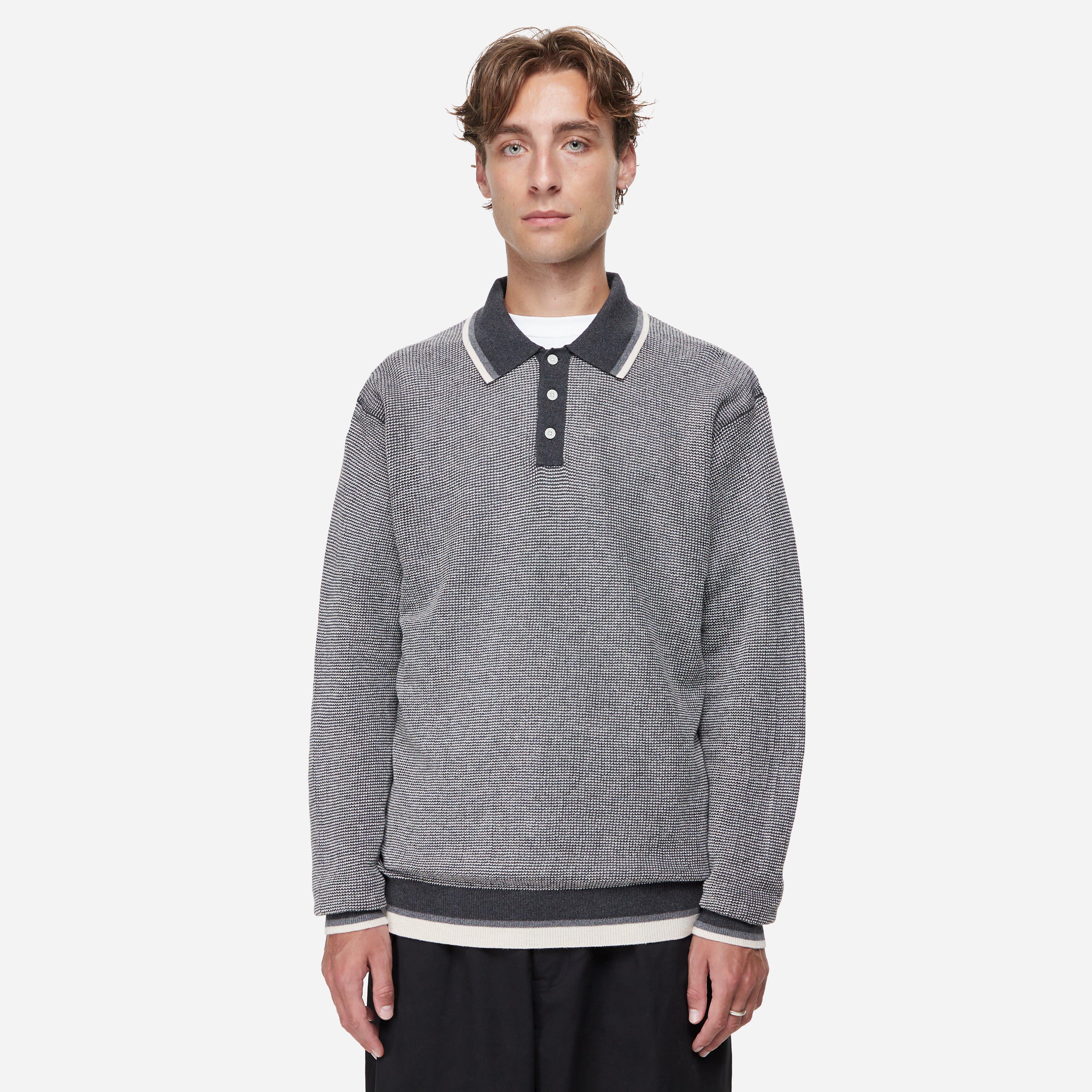 Charcoal - 50% wool, 50% cotton - 3 button placket - Made in China.