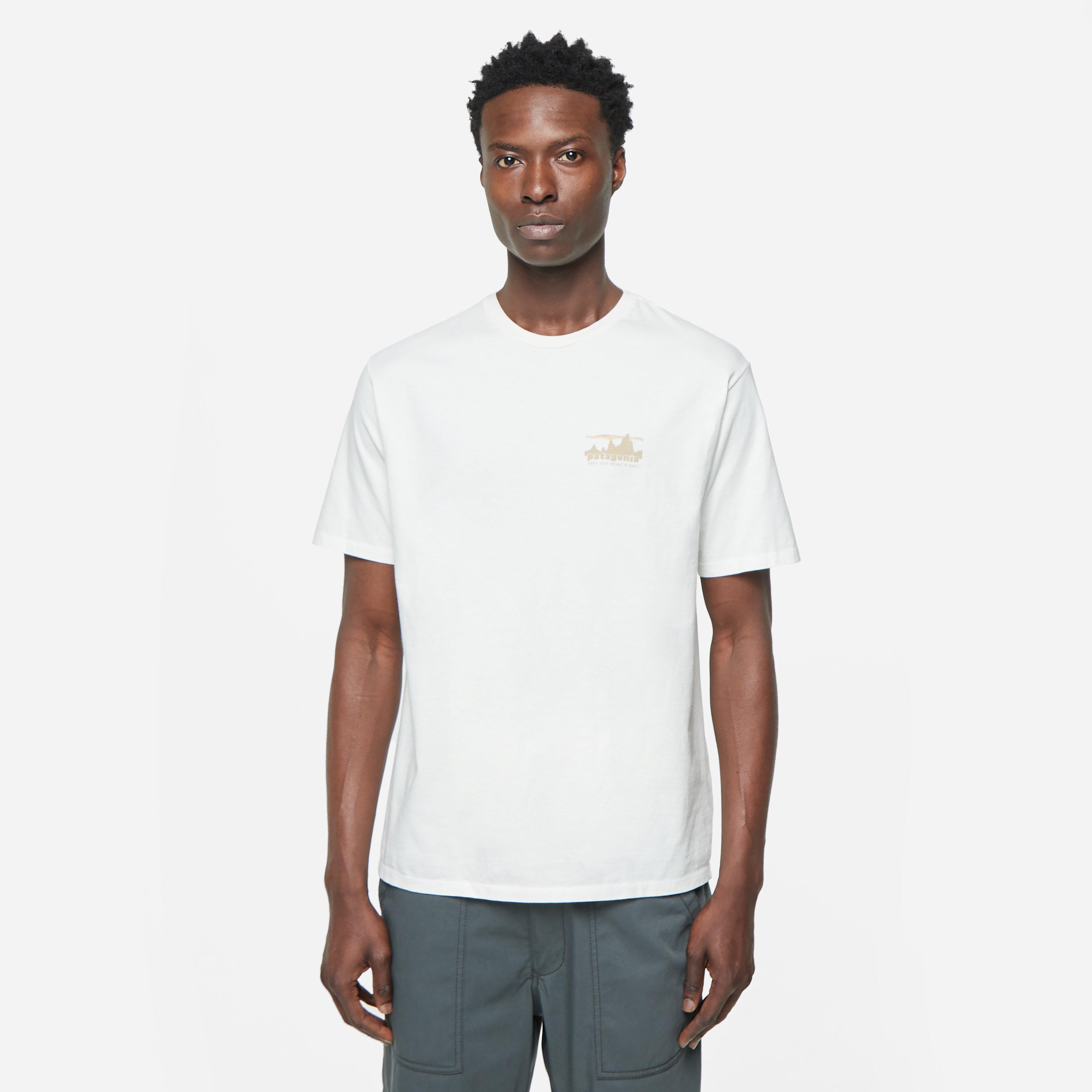 The Skyline graphic was inspired by a sewn label on vintage Patagonia gear from the '70s. White - 100% organic cotton - Crew neck - Straight hem - Model is 6'2" and wears size medium.