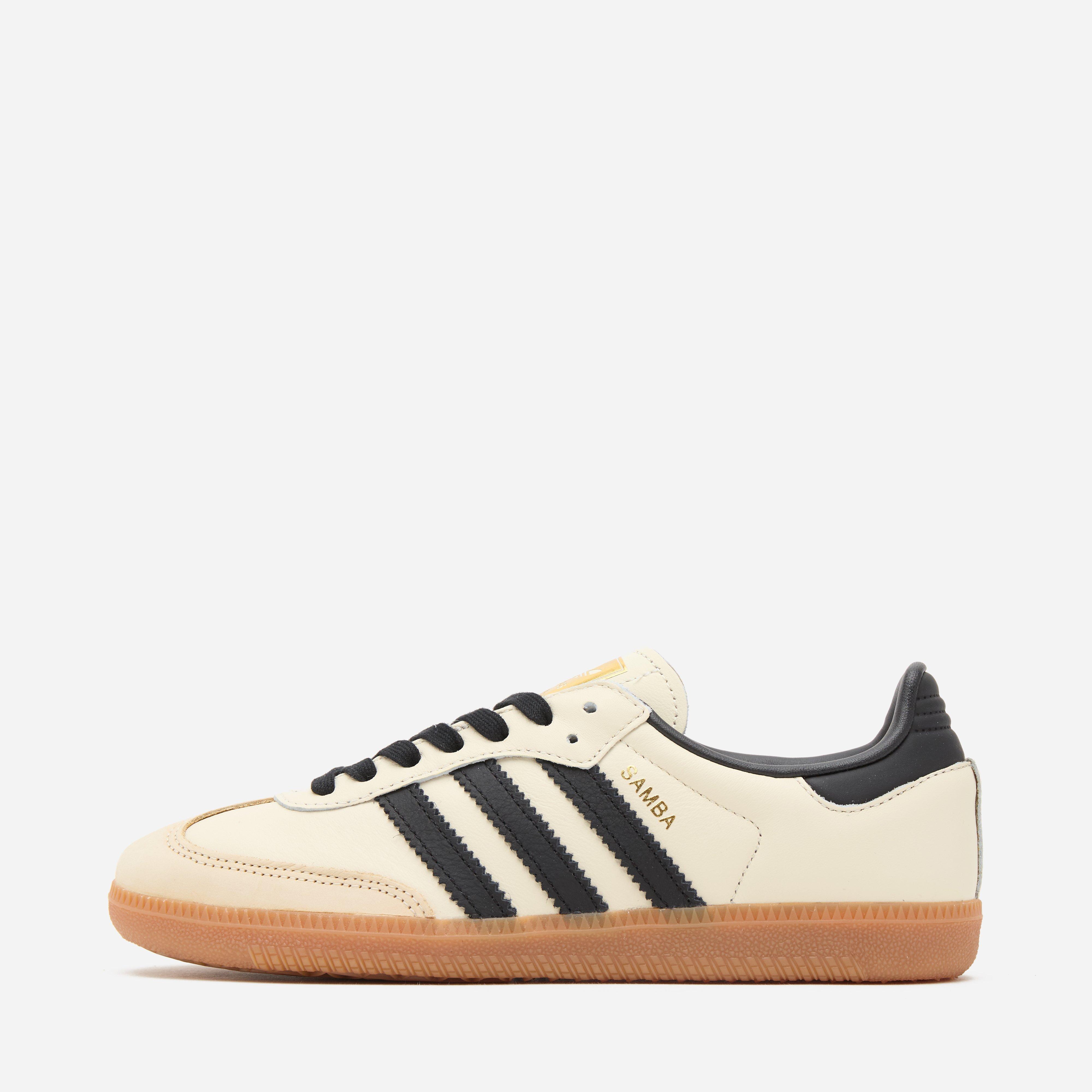 The Samba was then properly introduced at the 1950 World Cup, taking its name from Brazil's legendary cultural dance. Fast forward over 70 years later and the shoe is at the forefront of contemporary styling - perfect for matching with different everyday outfits. The OG version keeps the shoe's classic leather upper and has suede and gold foil detailing. Cream - Leather upper, gum rubber outsole - Gold foil branding - Regular fit, take your normal size.