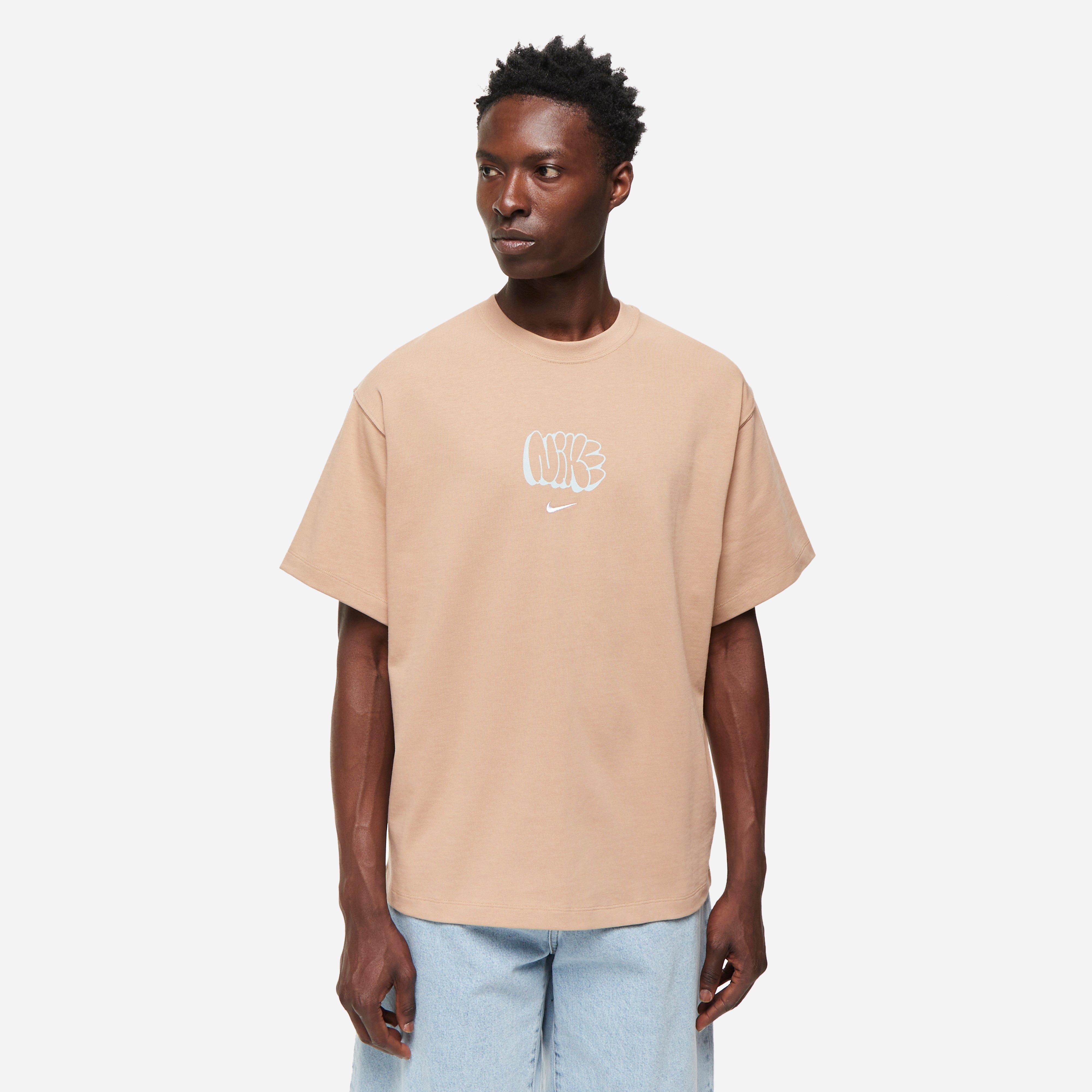 This Solo Swoosh Graffiti T-Shirt is a perfect base layer for all year round. Its heavyweight cotton material retains a relaxed fit structure, and is accented with the infamous Nike swoosh embroidery on the chest. Brown - 100% cotton - Embroidered Swoosh - Printed artwork - Dropped shoulders - Model is 6'1" and wears size medium