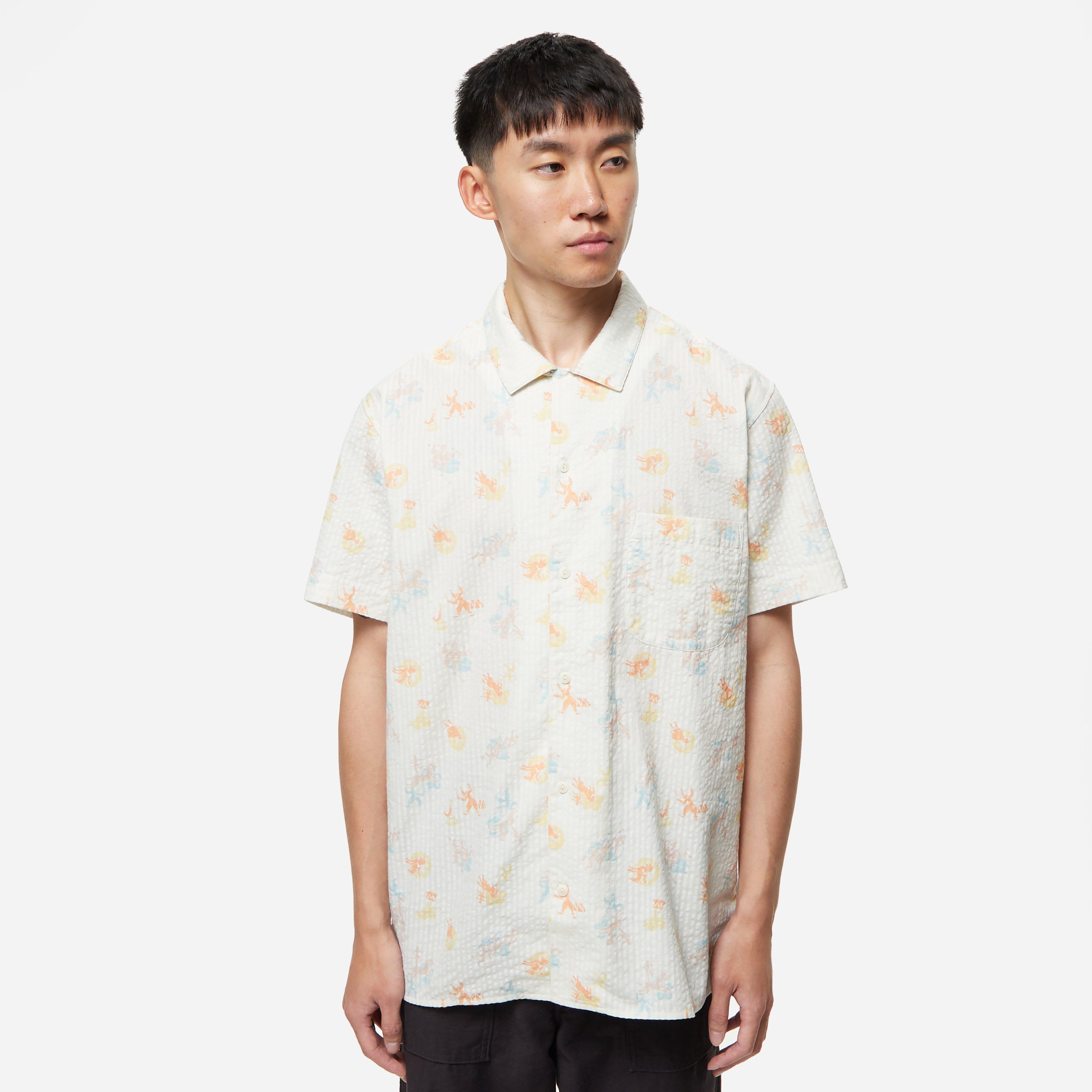 YMC's Malick Shirt is crafted from seersucker cotton - a summer fabric known for its breathability - decorated with a circus print.