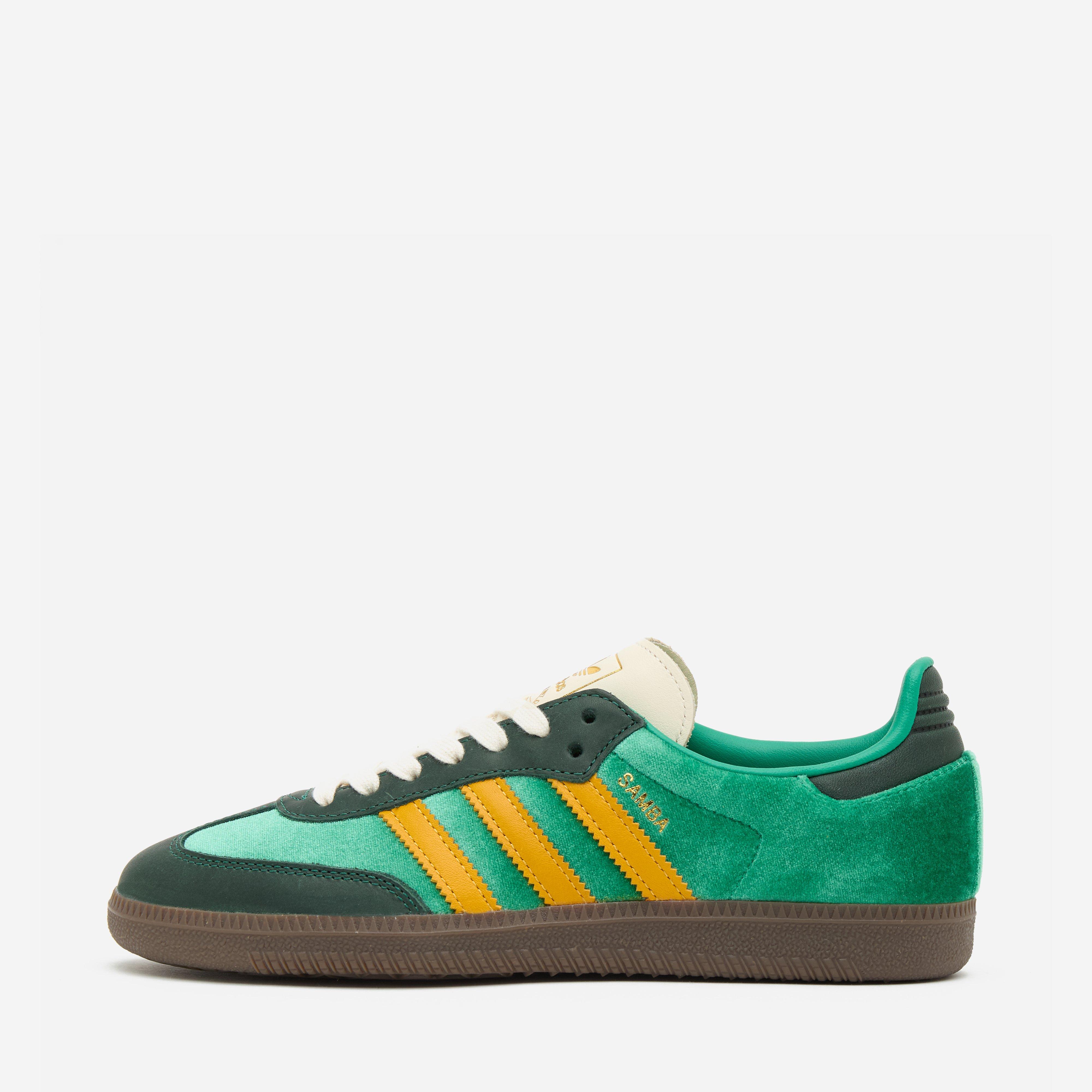 A high-fashion execution, adidas Originals swap out the usual textures and materials on its heralded Samba OG in favour of a velvet ‘Court Green’ and ‘Preloved Yellow’ colourway.