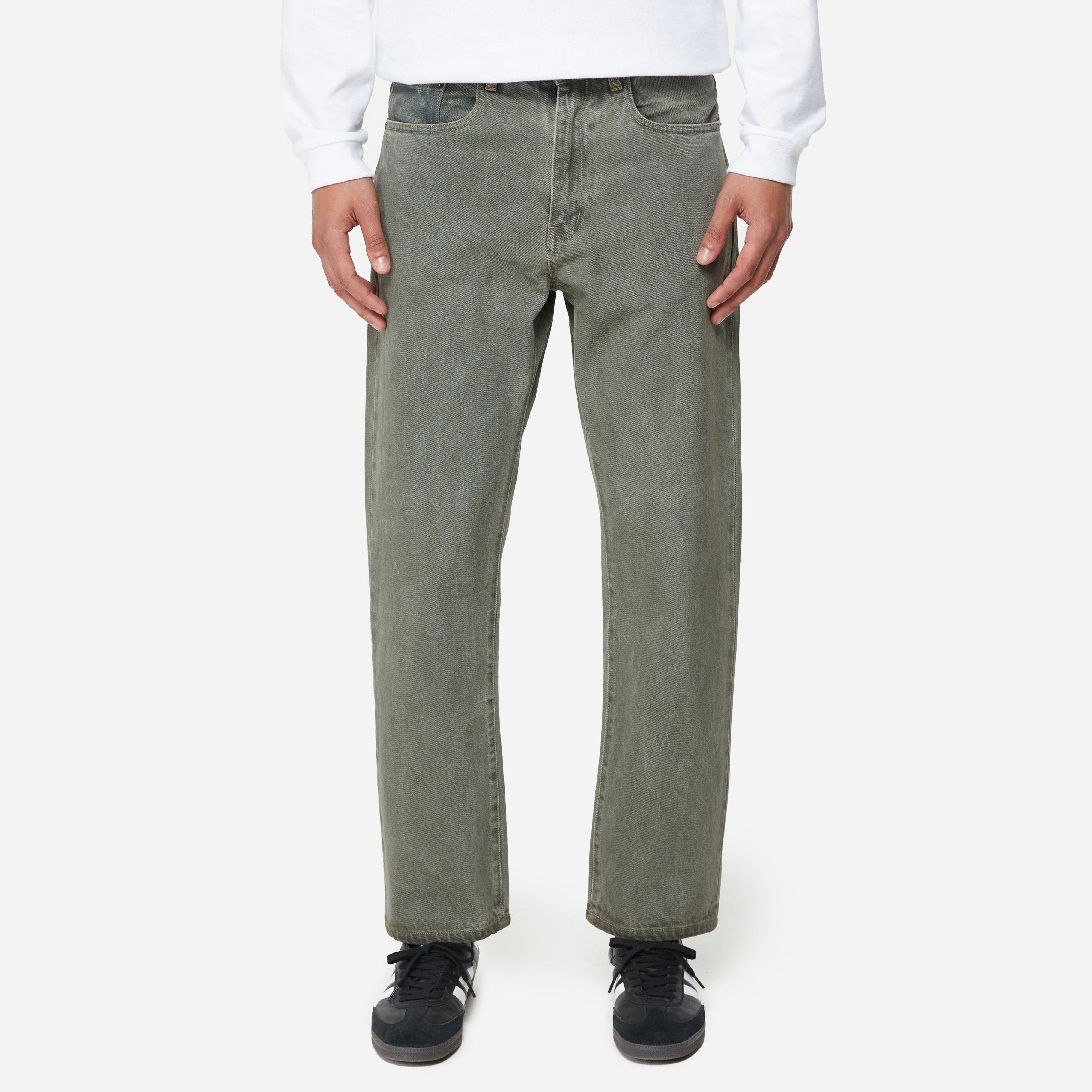 Green - 100% cotton - 14oz denim - Custom shanks and rivets - Debossed logo leather patch - Relaxed fit, take your normal size - Model is 6'4" and wears a size medium - Waist size guide (in.) - S=32.5, M=34.5, L=36.5, XL=38.5