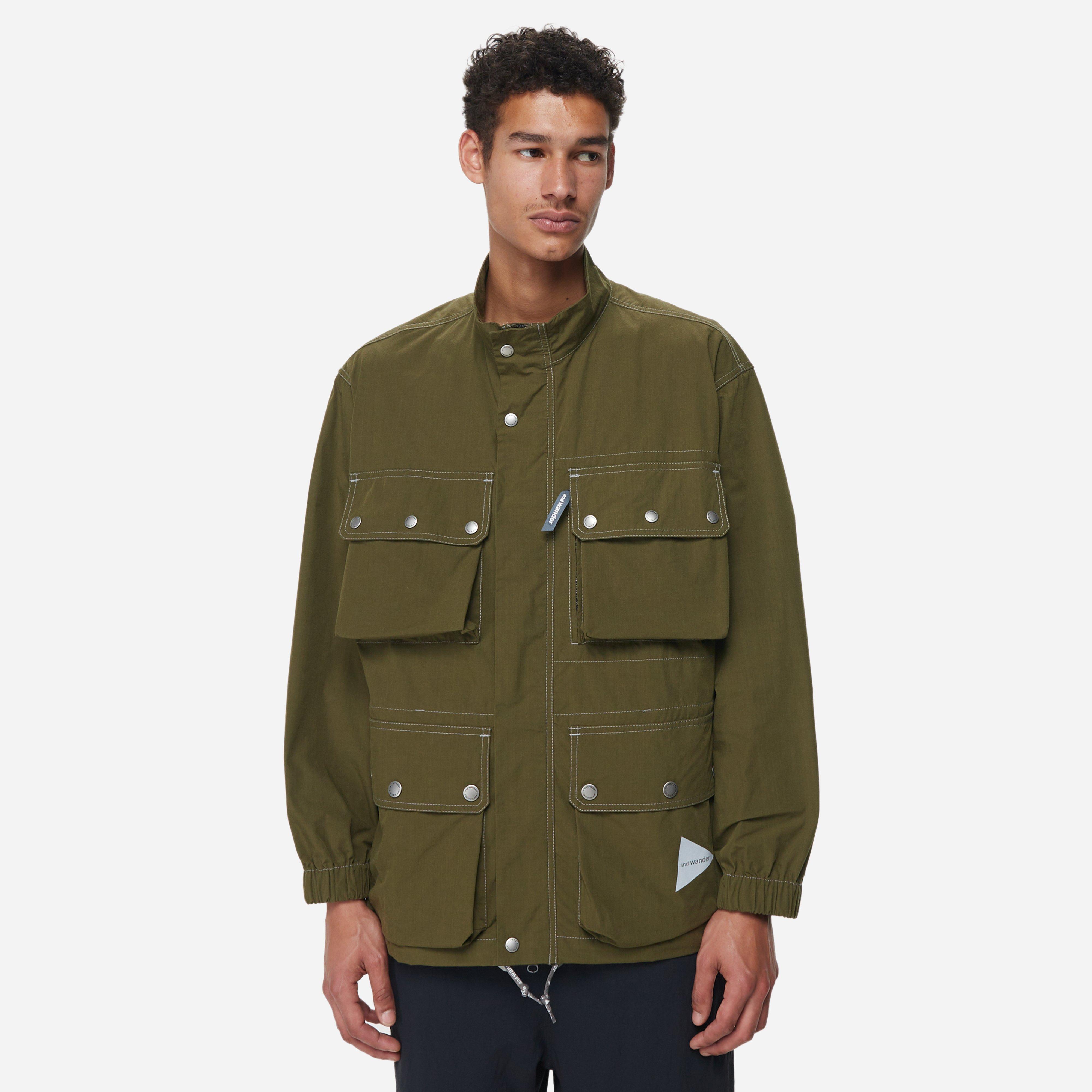 The Parachute jacket by sleek Japanese brand and Wander is a relaxed military-inspired design made from water-resistant, lightweight nylon shell accented with a host of patch pockets and reflective logo prints.