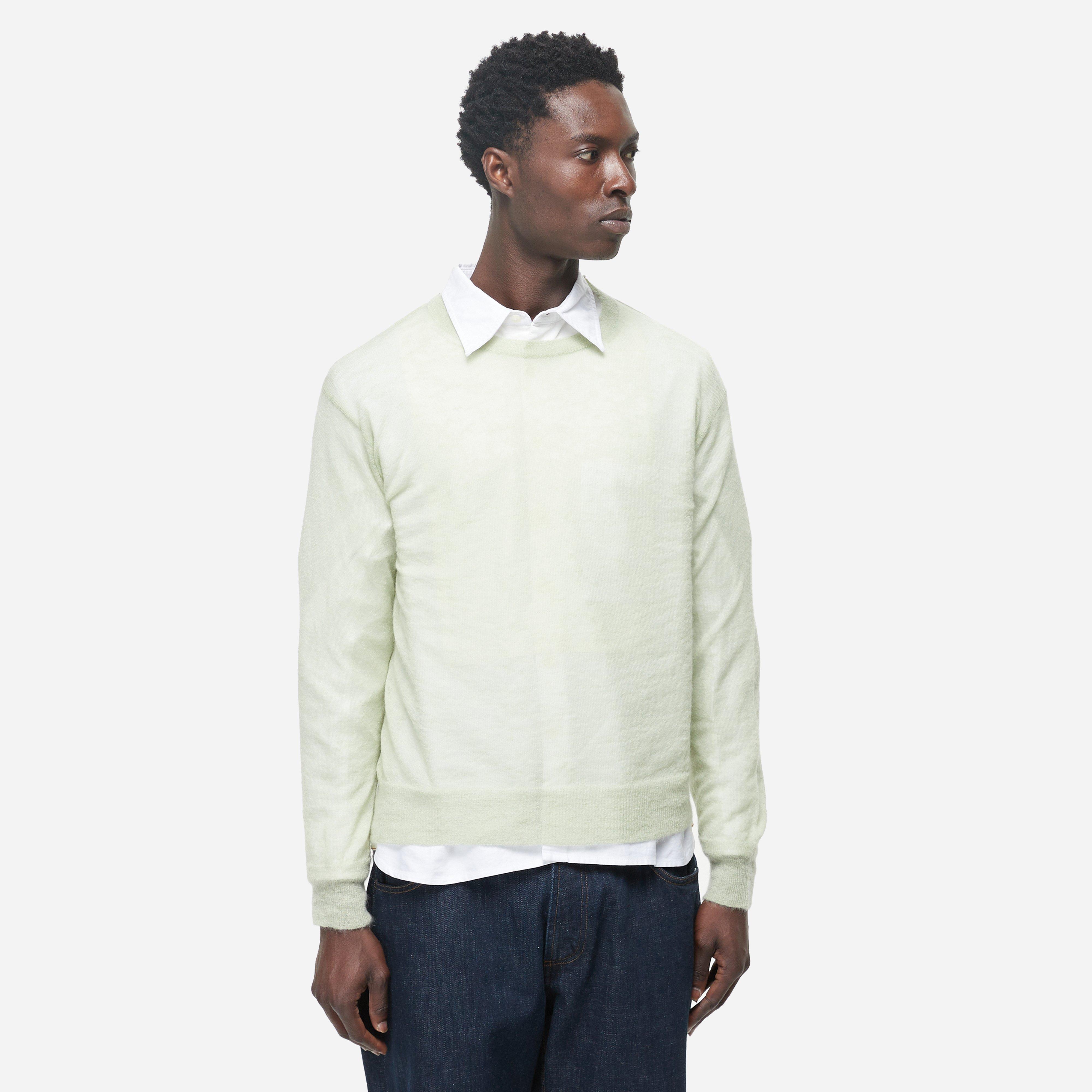 This piece is uses ultra-fine kid mohair - an exquisite yarn sourced from South Africa. Green - 65% kid mohair, 30% nylon and 5% wool, Regular fit, take your normal size - Model is 6'2" and wears a size medium.