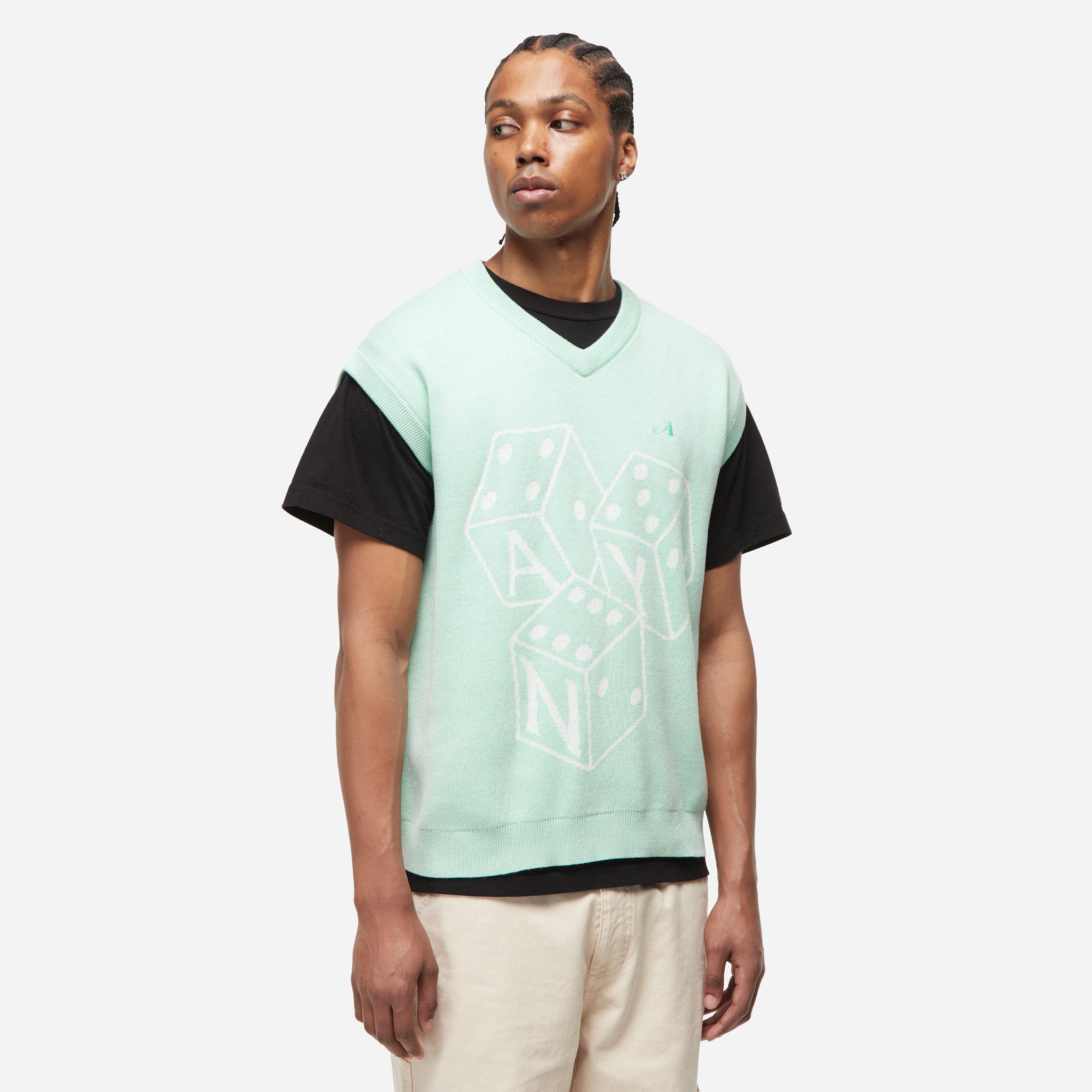 Mint - 52% acrylic/48% cotton - Regular fit - Ribbed V-neck - ‘A’ logo embroidery - Model is 6’2’’ and wears a size medium.