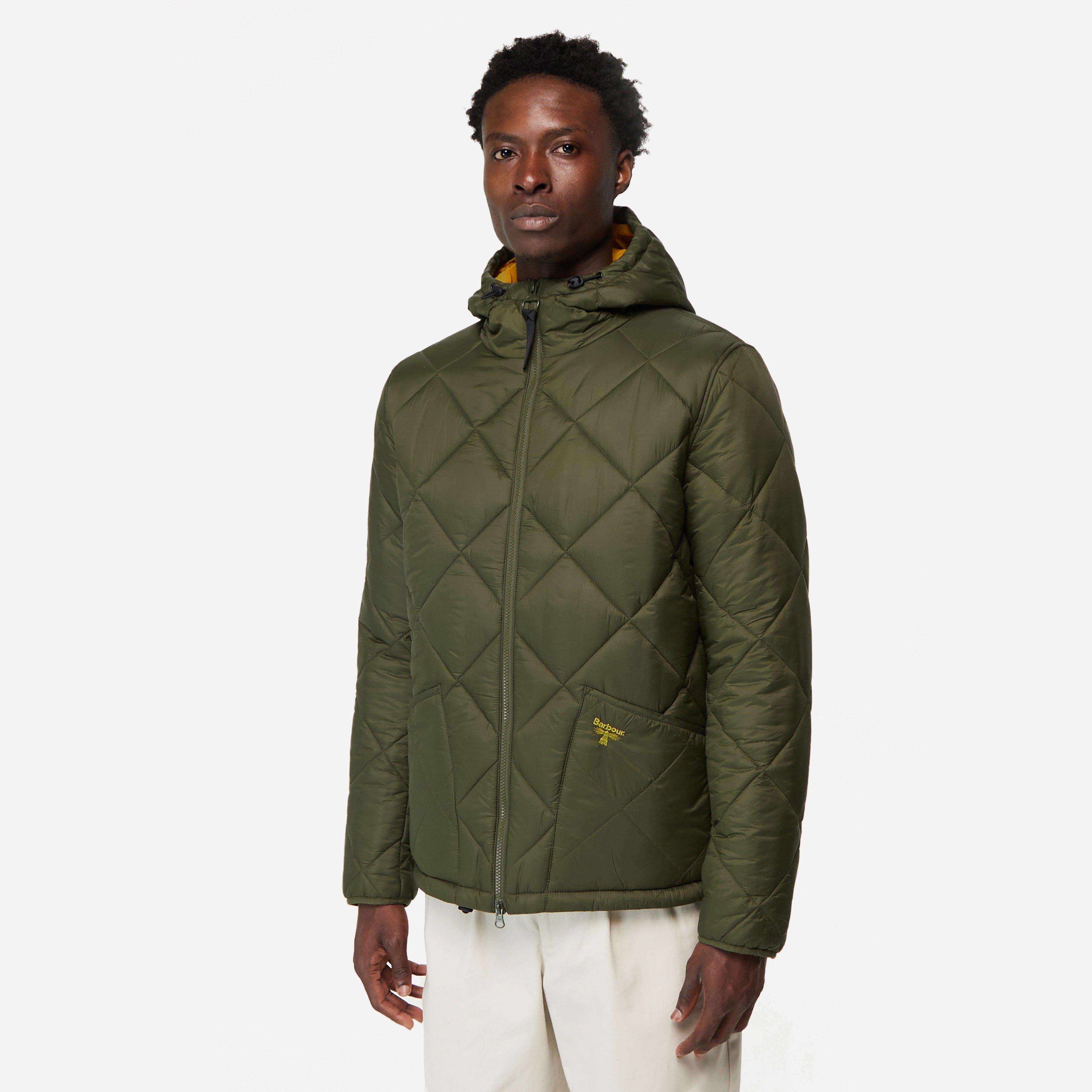 Green - 100% polyamide - Lycra-bound cuffs - Box quilting - Patch pockets - Zip up - Adjustable hood toggles - Regular fit, take your normal size - Model is 6'1" and wears a medium.