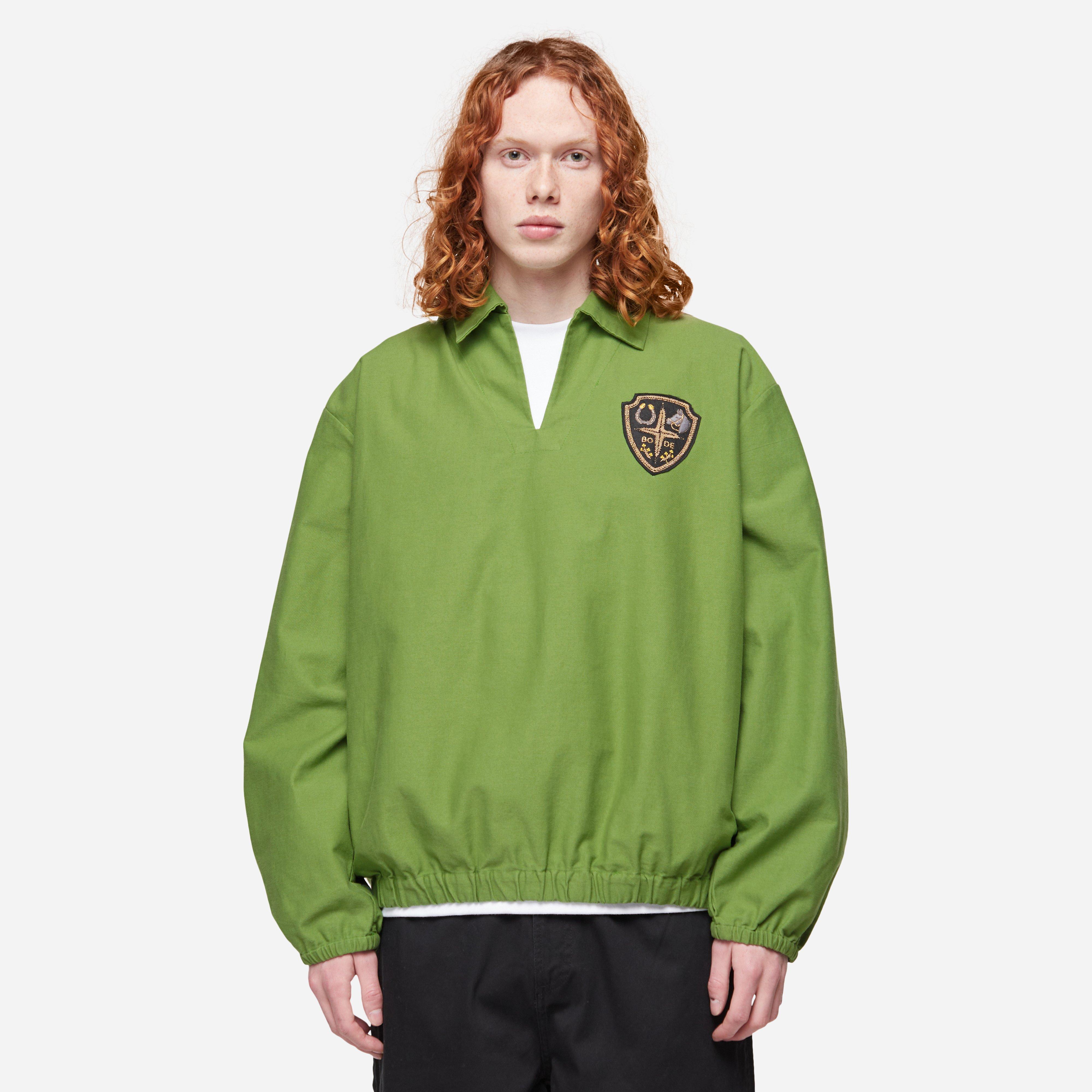 Green – 100% cotton – Made in India – Midweight fabric – Elasticated trims – Spread collar – Bullion embroidery – Model is 6’1’’ and wears a size medium.