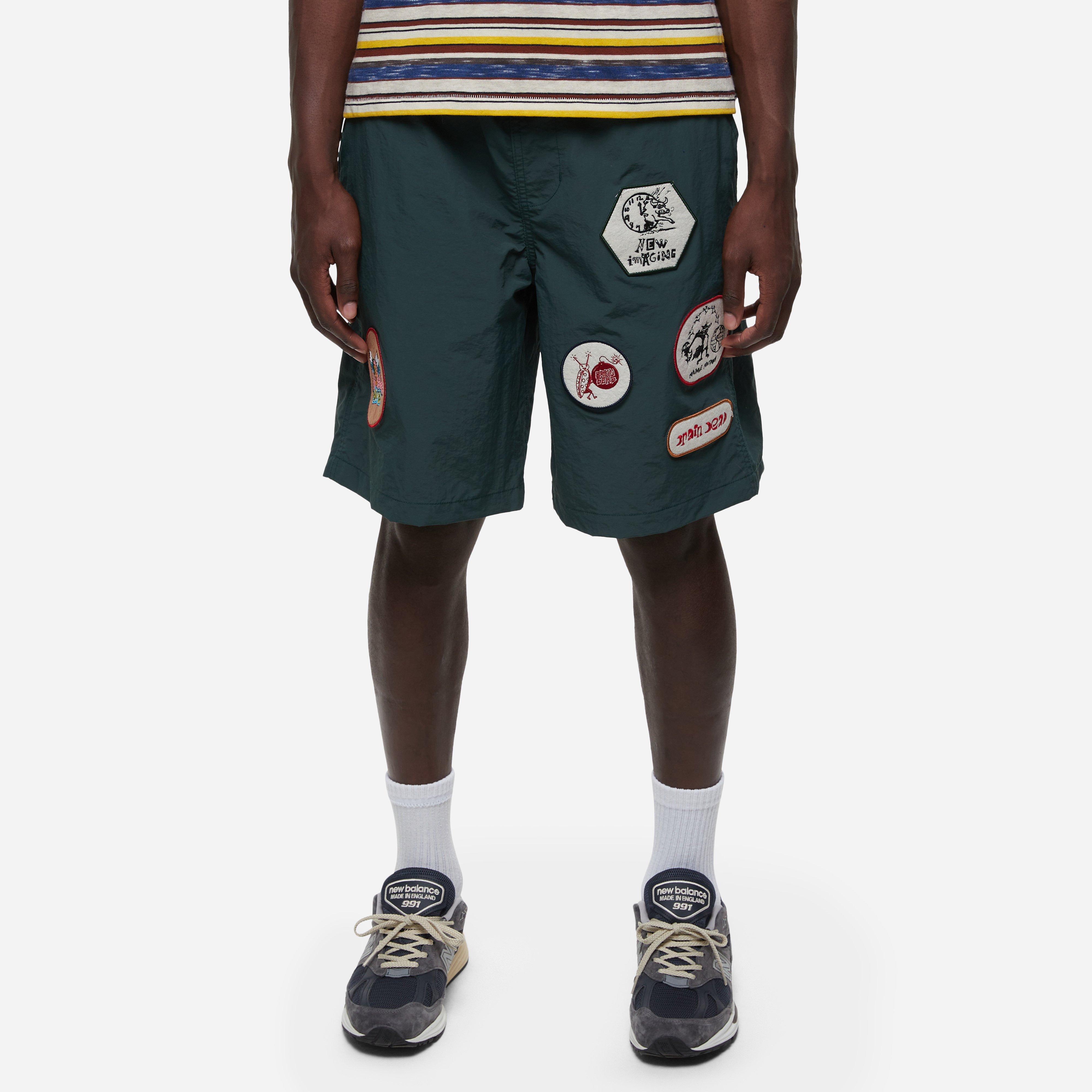 Green - 100% nylon - 9 3/4" inseam - Elastic waist - Belt webbing - Back hand pocket - Branded patches - Model is 6'1" and wears a size medium