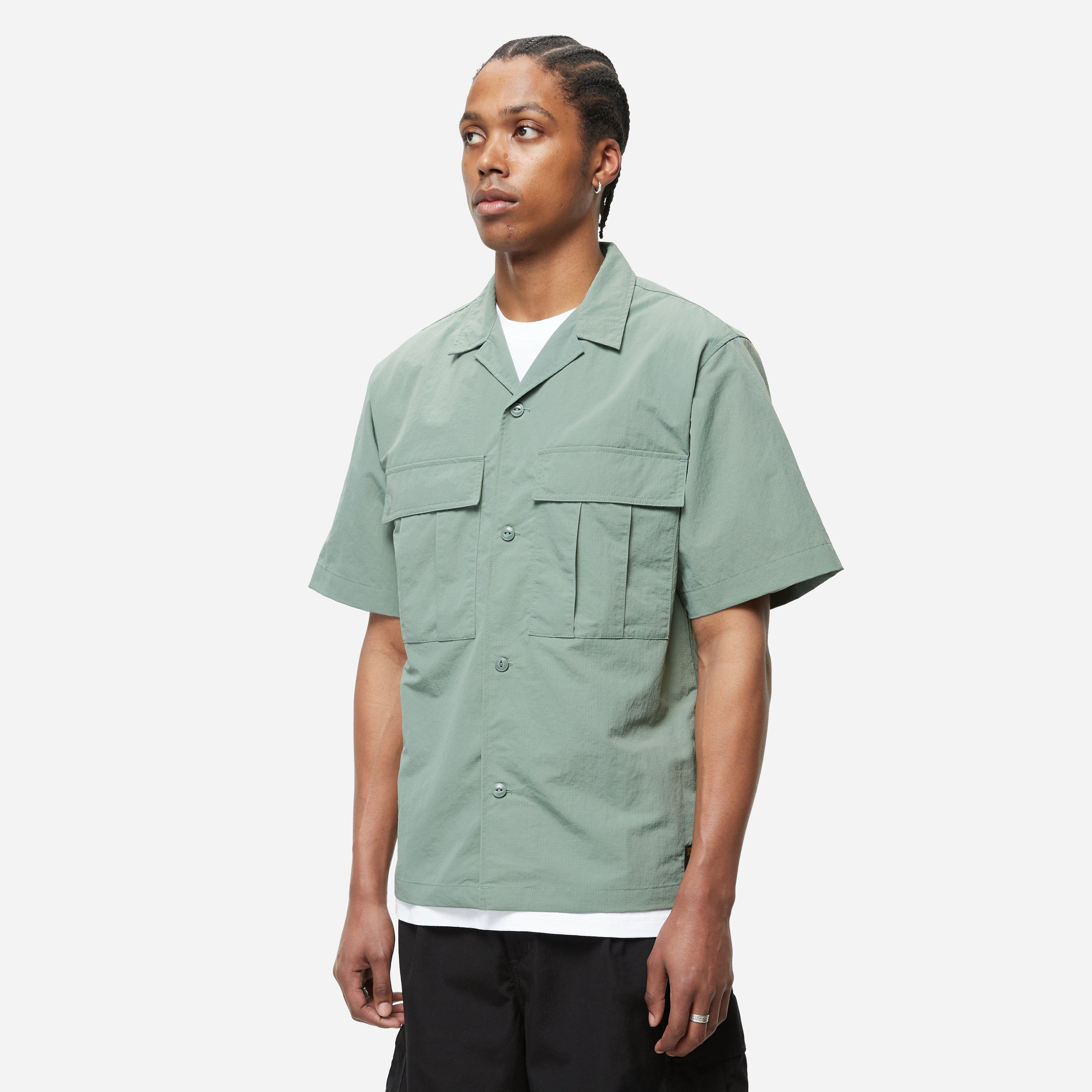 Green – 100% nylon ripstop – Loose fit – Chest pockets – Military labelling – Model is 6’2” and wears a size medium