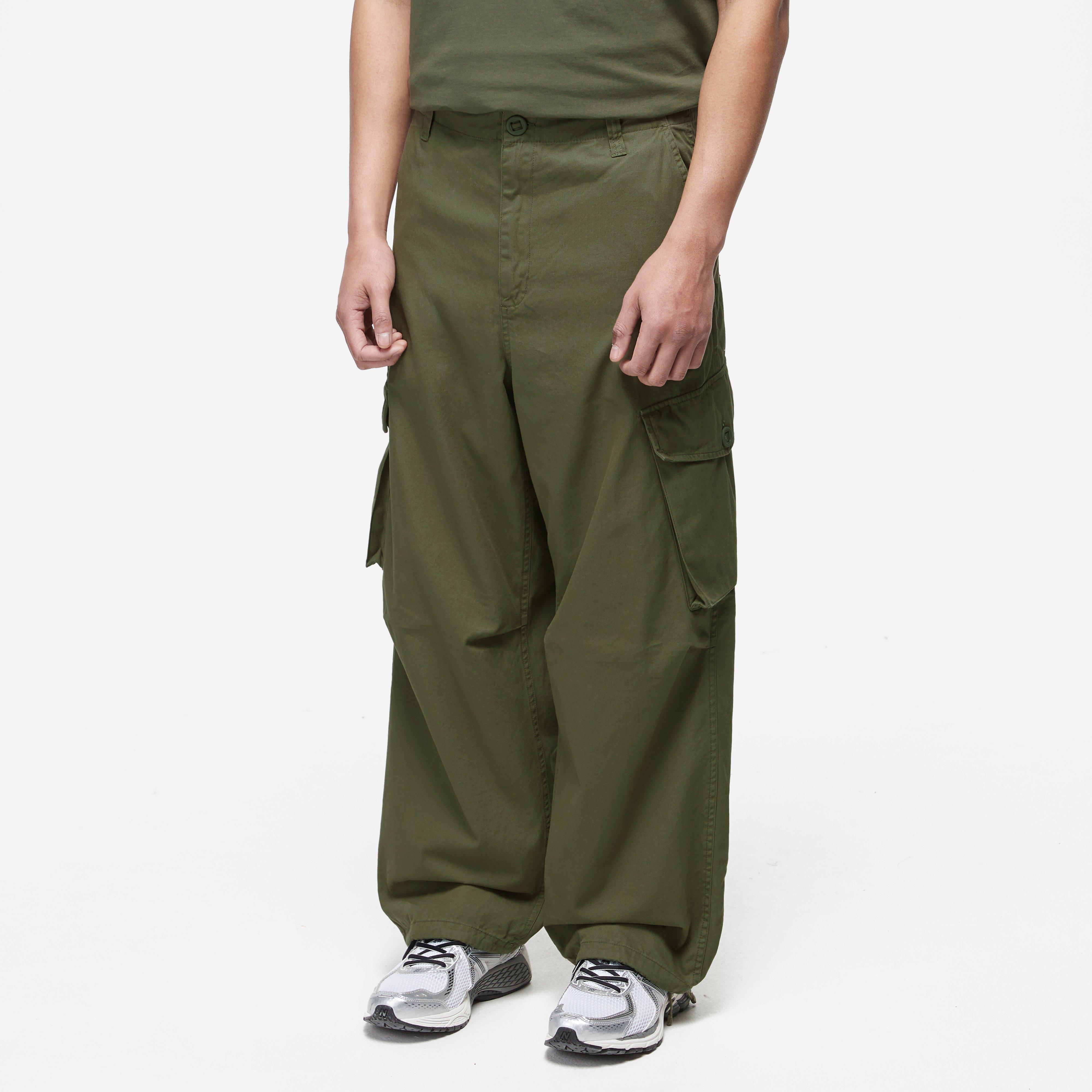 Olive - 100% cotton - Relaxed fit, regular waist - Adjustable leg openings - Zip fly - Military label - Model is 6'0" and wears a size medium.