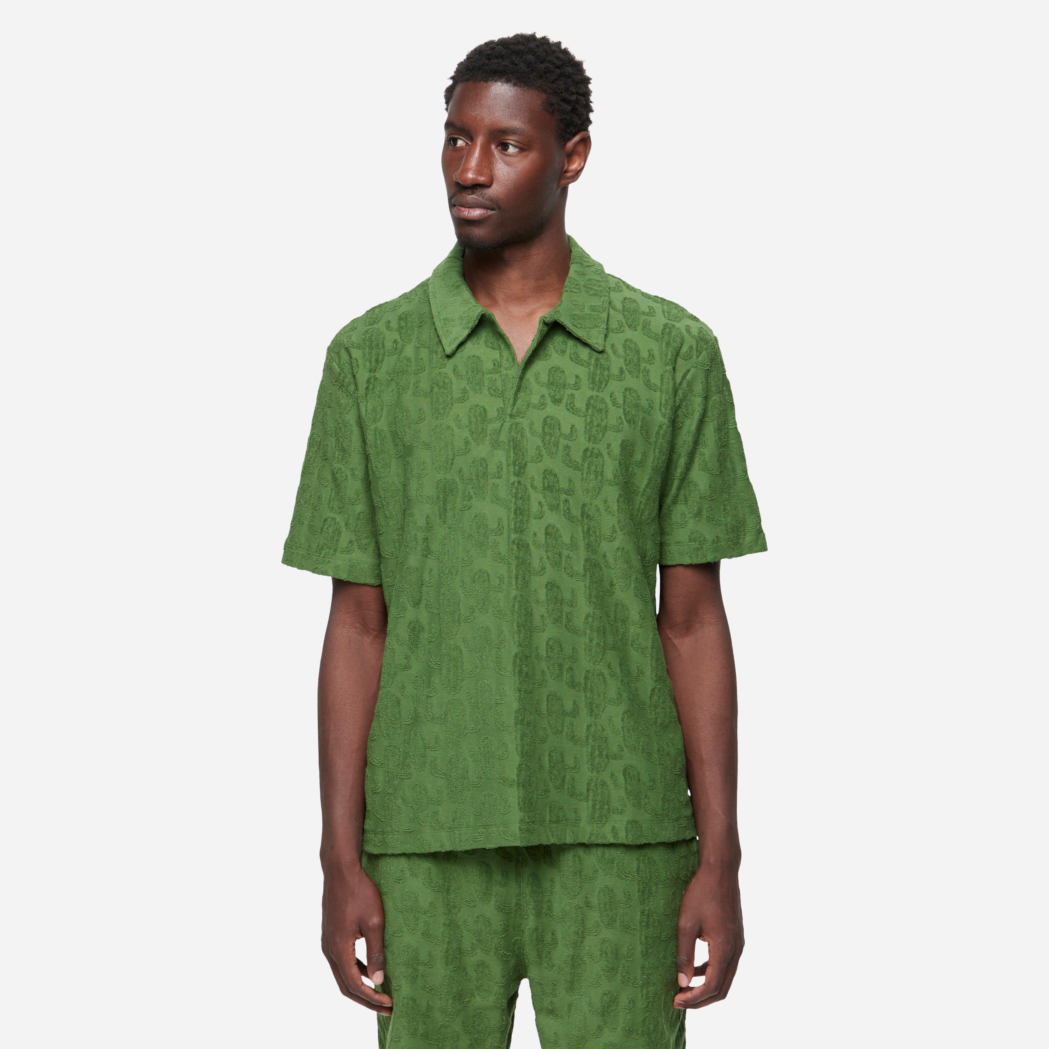 The brand's Polo Shirt is crafted from jacquard terry cloth that's made in Portugal. Green - 100% cotton - Straight hem - Side slits - Model is 6'1" and wears a size medium