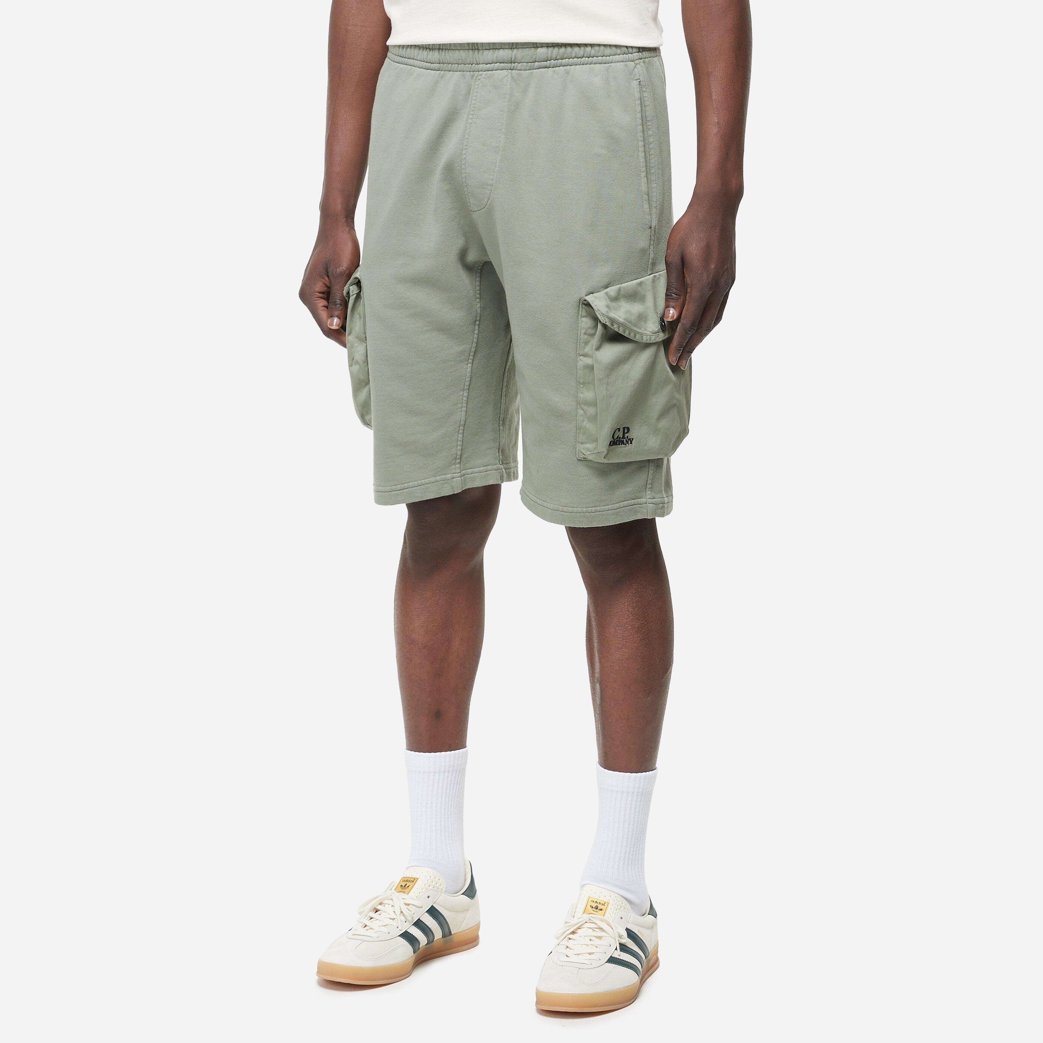 P Company's Cargo Short is an elevated summer shape in cotton jersey with utilitarian accents. Green - 100% cotton - Elastic drawstring waist - Button closure cargo pockets - Embroidered branding - Regular fit - Model is 6'3" and wears a size medium.