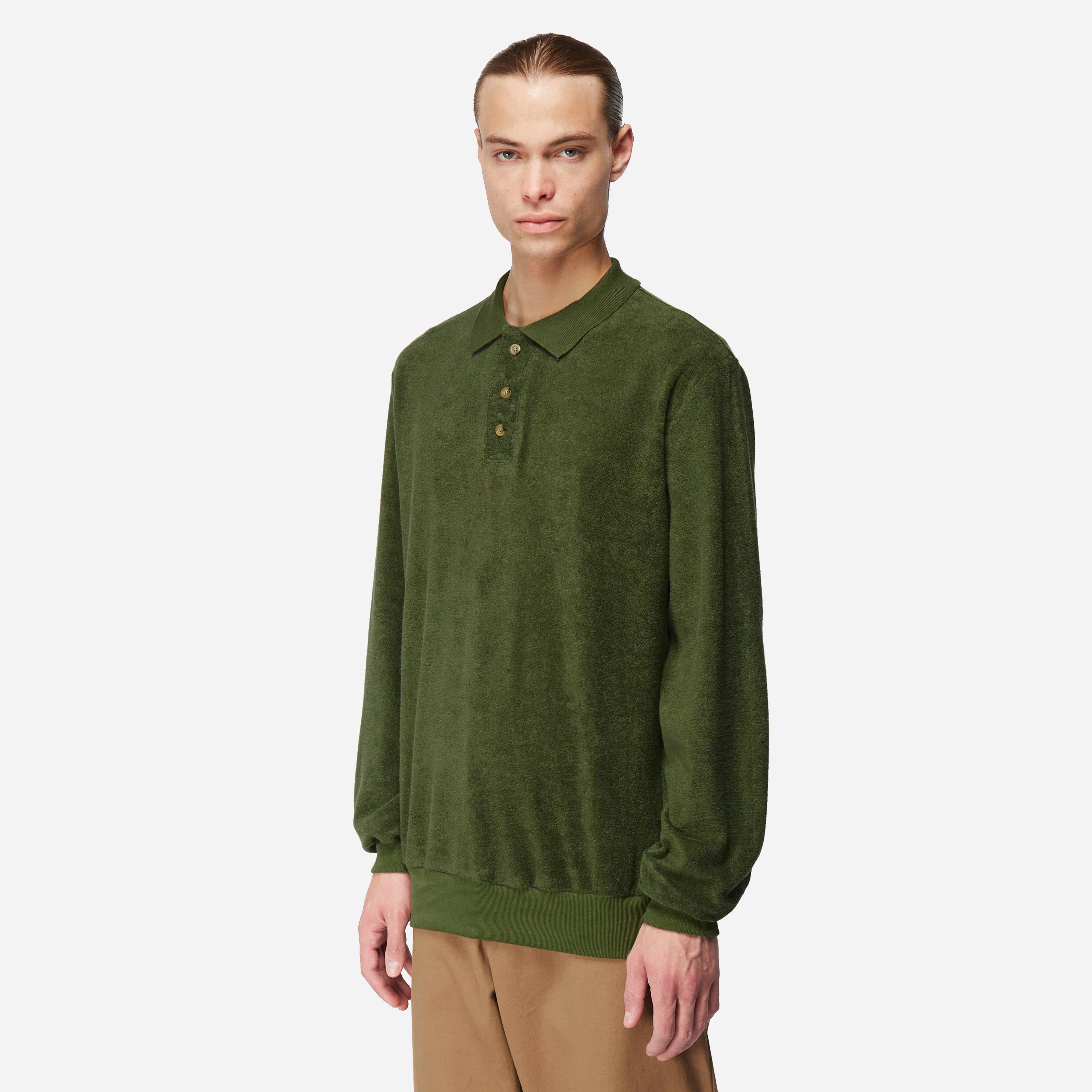The Mister Wong Polo Shirt has been knitted in Belgium using a breathable towelling fabric made for spring-summer.Green - 80% cotton, 20% polyester - 2 button placket - Ribbed trims - Regular fit, take your normal size - Model is 6'1" and wears a medium."