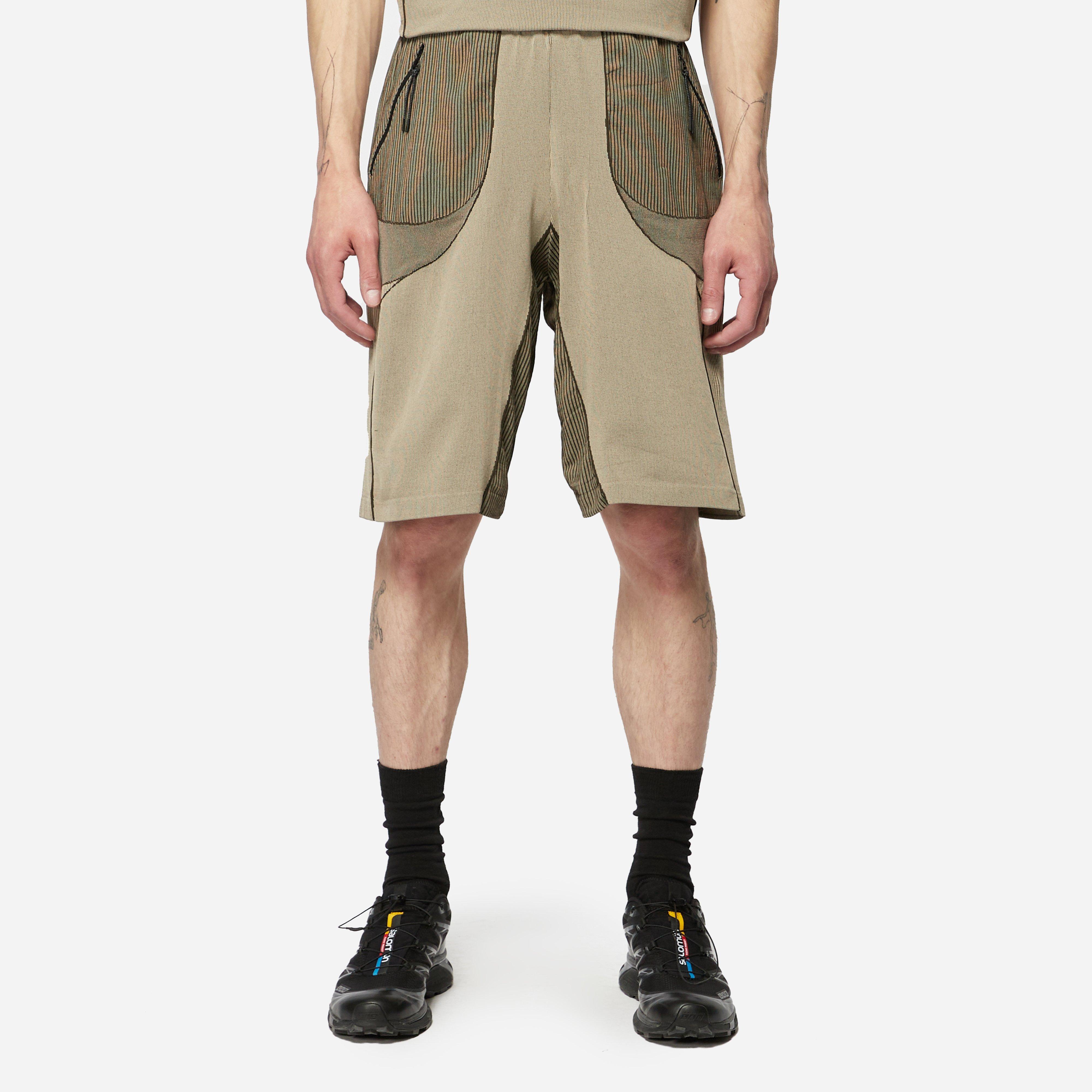 L-A.L is garnering attention at the forefront of innovation within the genre of technical avant-garde clothing. The Gelder Short is made in Italy from a technical, sweat-wicking yarn and designed with considered details like rear mesh panelling for air circulation and a reinforced construction at key areas. Green - 95% polypropylene, 5% elastane - Elastic drawstring waist - Made in Italy - Mesh panels - Regular fit, take your normal size - Model is 6'1" and wears a medium - Waist size guide not stretched (in.) - XS/S=30, M/L=31.5, XL/XXL=33."