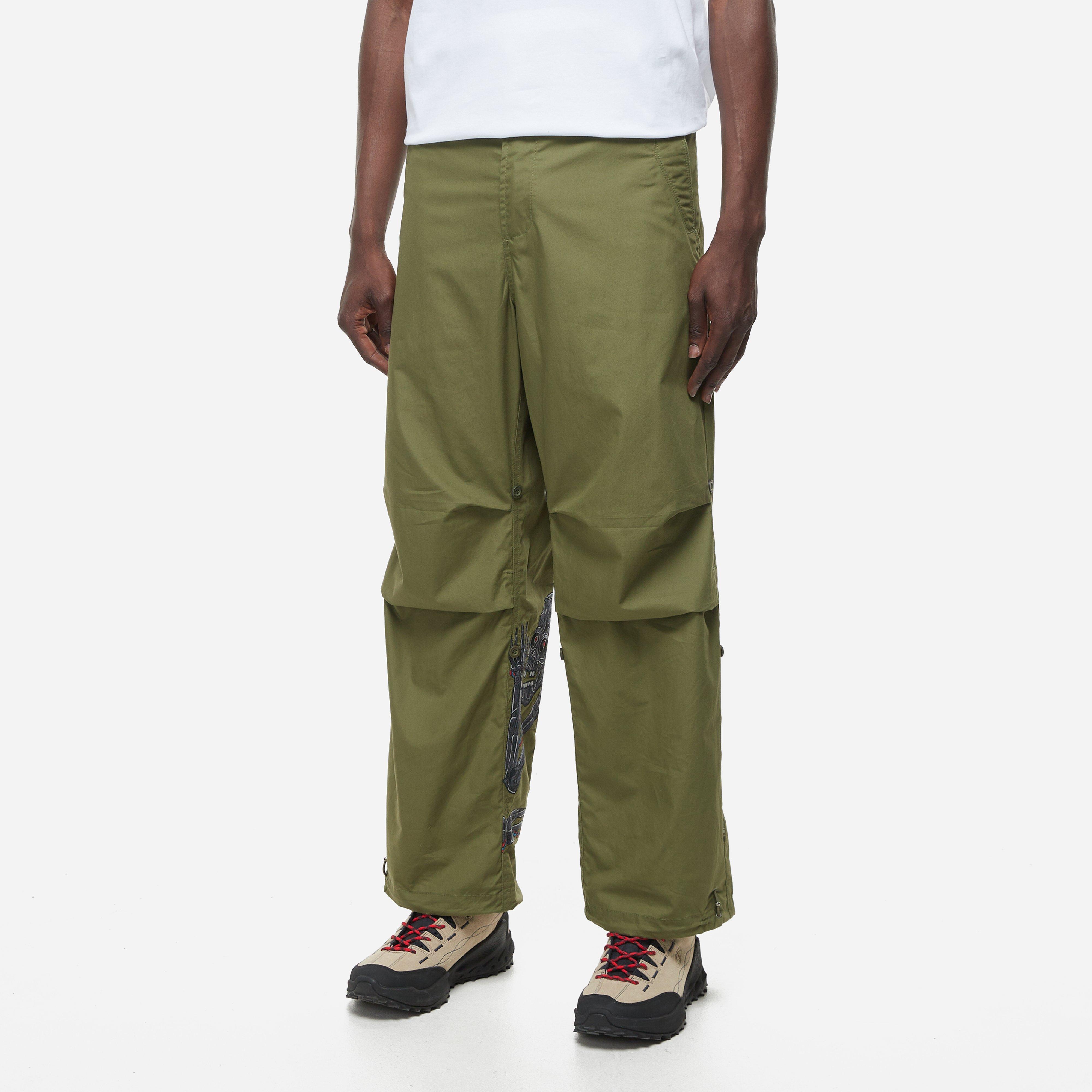 Olive – 100% cotton – Hand machine embroidery - Loose fit - Zip pocket - Adjustable Snocord system - Adjustable waist and hem – Internal media pocket – Ankle stash pocket – Converts to ¾ length – Model is 6’2” and wears a size medium.