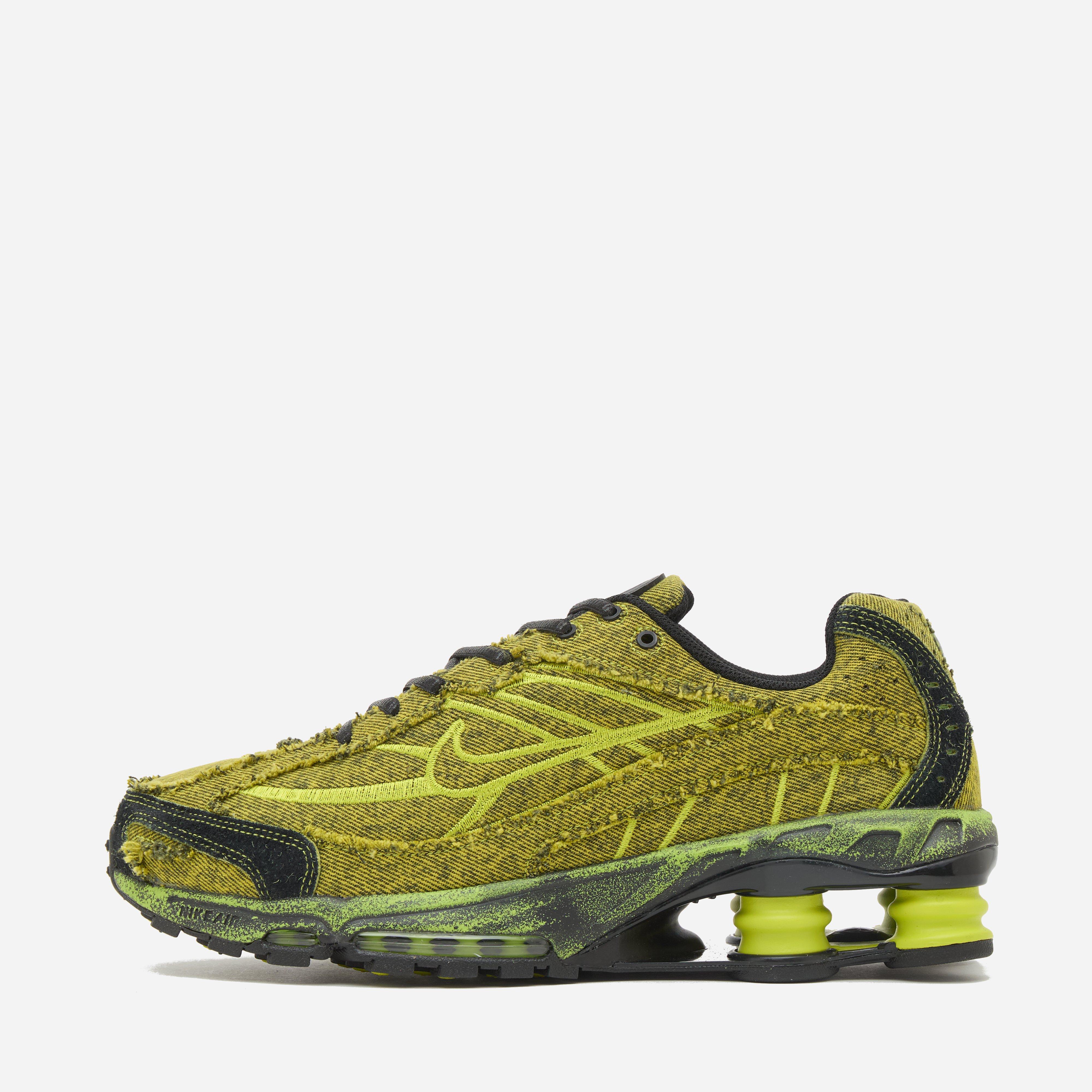 The Nike Shox Ride 2 ‘Bright Cactus’ fuses together futuristic four-columned cushioning technology with moss-like distressed denim and hairy suede aesthetics.