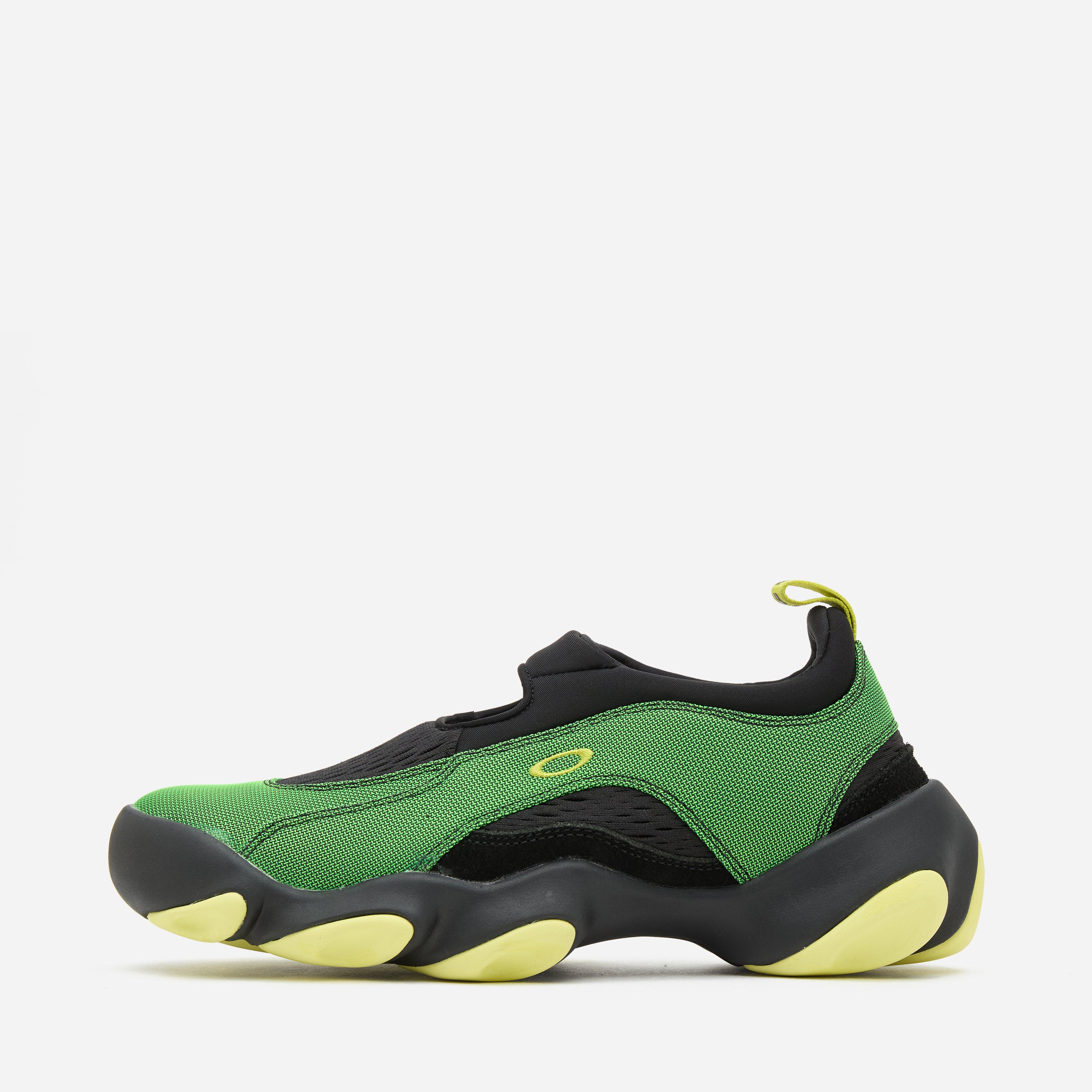 Oakley FT's version experiments with a breathable suede and neoprene upper sat above a chunky, undulating 3-point fit outsole unit for comfort and shock absorption. Green - Suede/ neoprene upper, EVA/ rubber outsole - Padded neoprene sock - Stitched logo - Regular fit, take your normal size - Style code: BDF23S02003572GR31