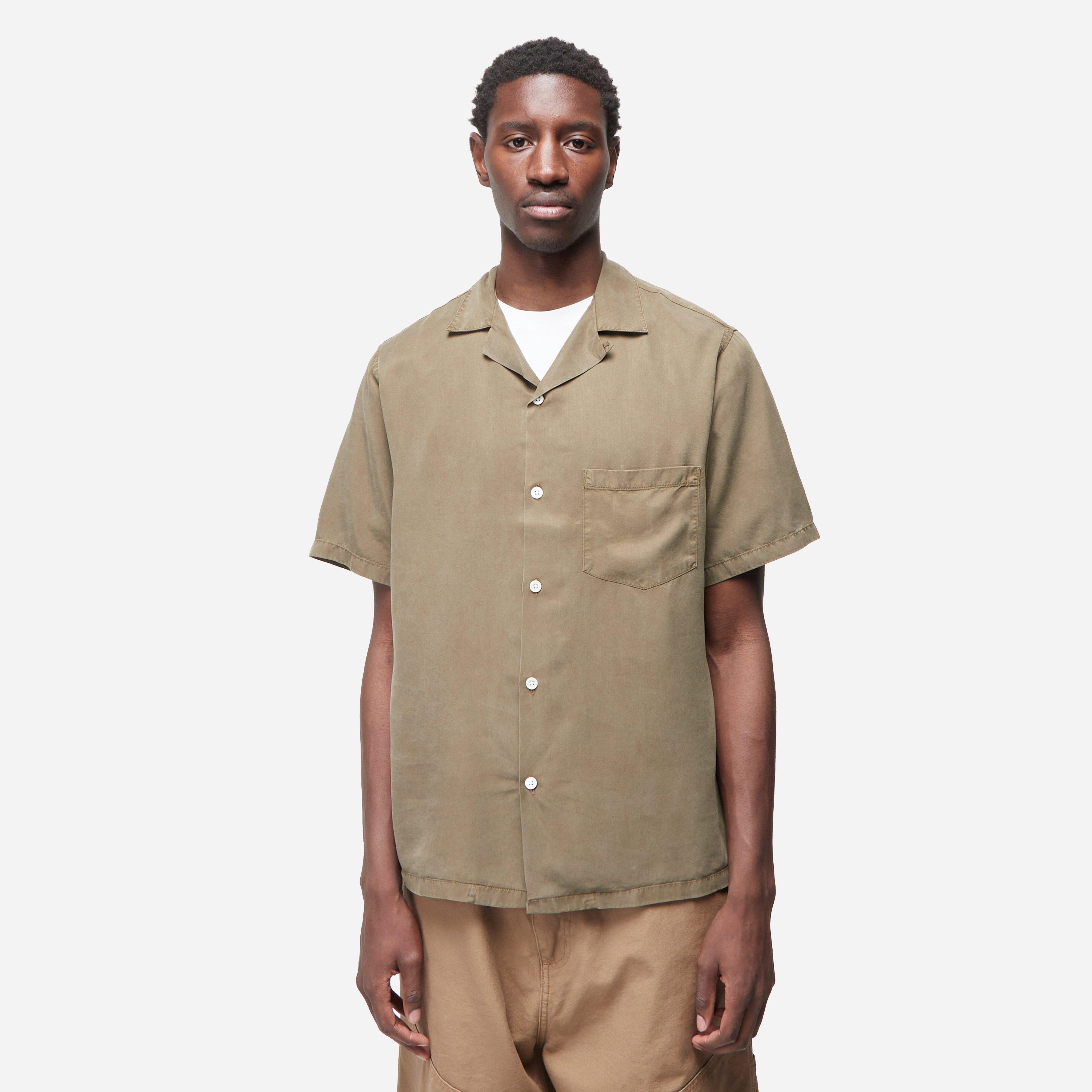 Manufactured in local towns in northern Portugal, the label celebrates the people, coast and mountains of its native region. Olive – 100% Tencel – Mother Pearl buttons – Chest pocket - Made in Portugal – Model is 6’1” and wears a medium.