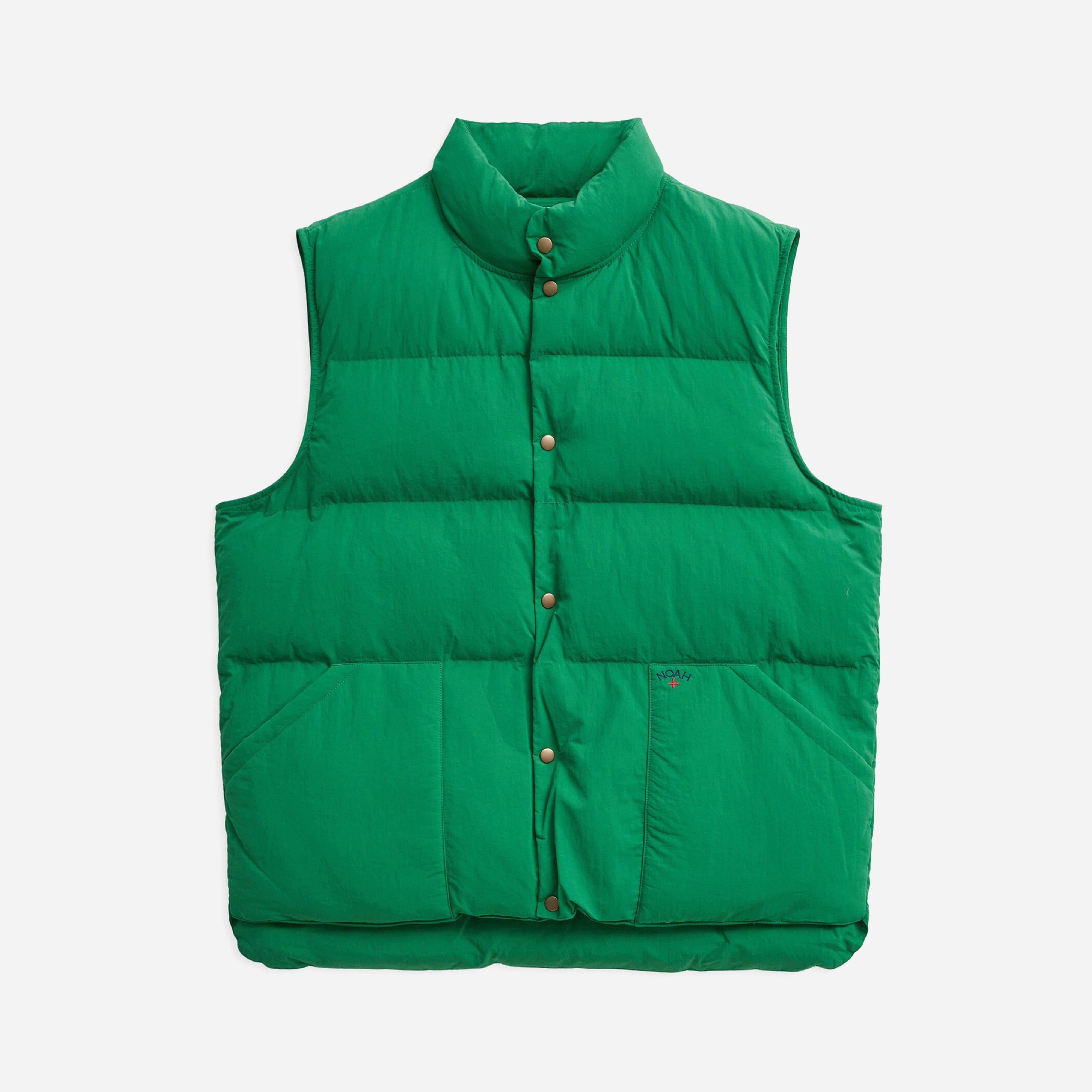 Green – 100% recycled nylon – Primaloft insulation – Snap button closures – Patch pockets – Interior chest pockets – Embroidered backgraphic – Model is 5’11’’ and wears a size medium.