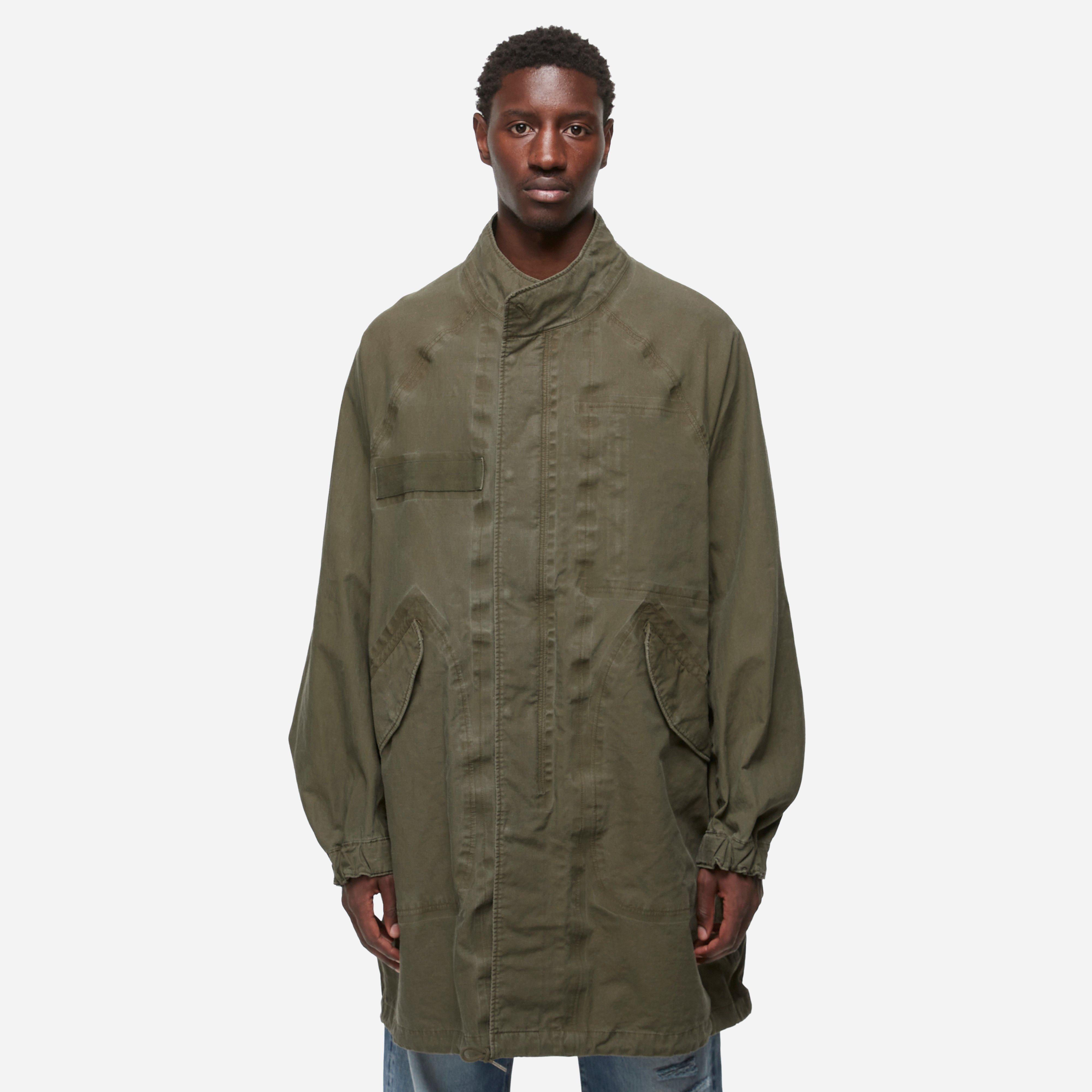 The Six-Five Fishtail Parka is hand-treated with a ‘Mud Dye’ technique which gives the garment an aged finish. Green – 100% linen – Relaxed fit – Raglan sleeves – Dual front pockets – Concealed zip closure – Water repellent – Fishtail hem – Natural dye – Damaged finish – Made in Japan – Model is 6’1’’ and wears a size 3.