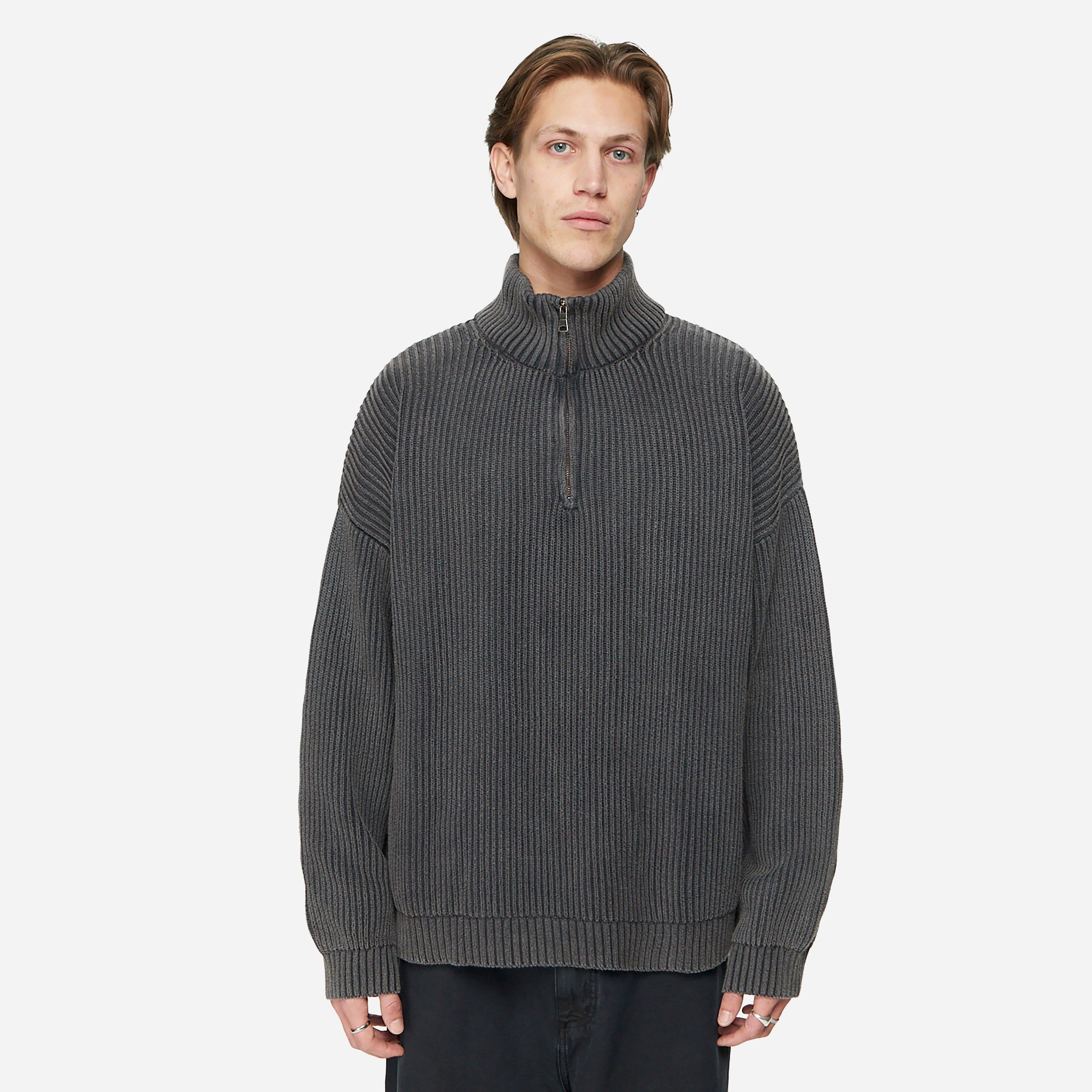 Grey – 44% acrylic, 33% polyester, 23% BCI cotton – 725gsm fabric – Rib funnel neck – Shaped seam – Overlock stitching – Woven label – Model is 6’2.5’’ and wears a size medium.