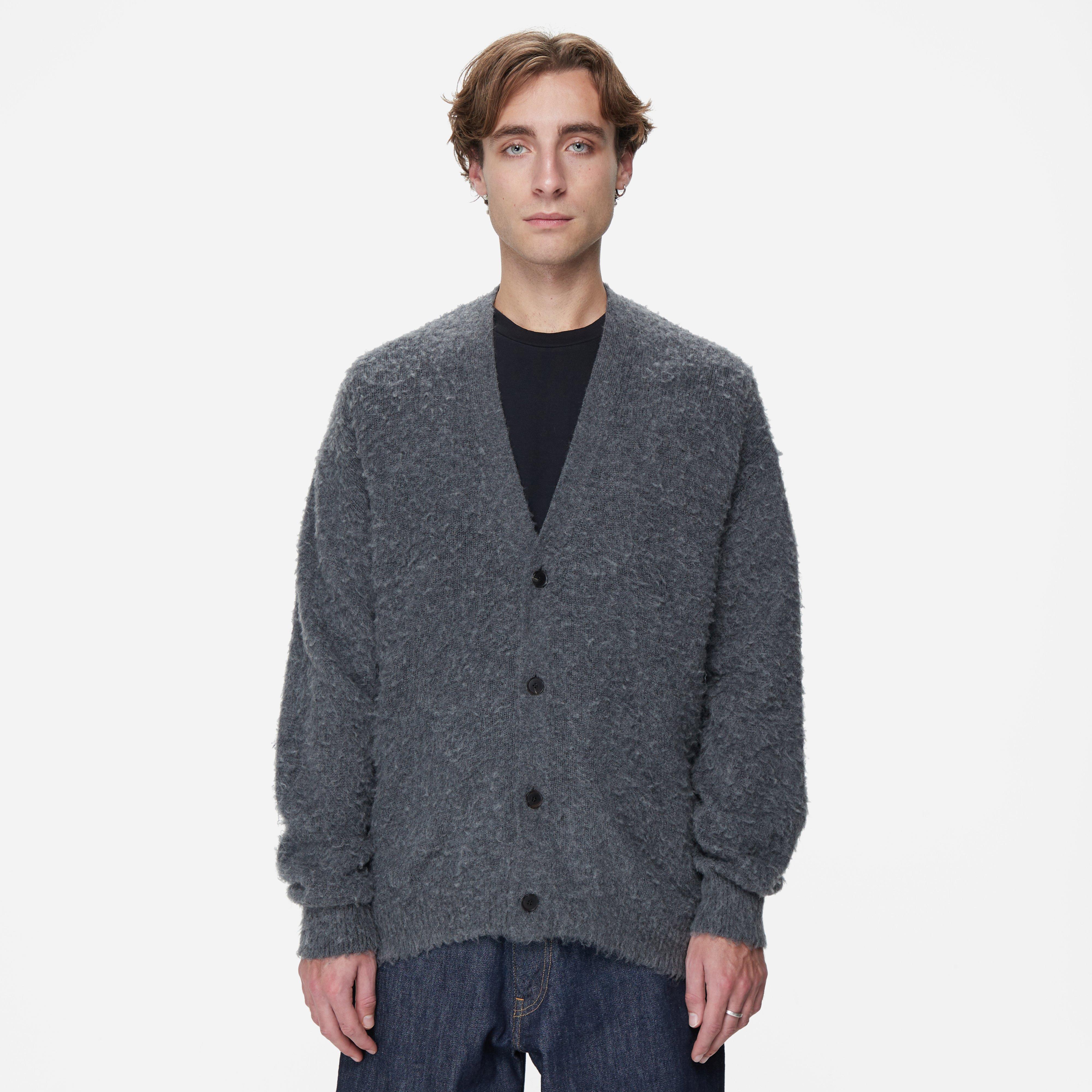 This piece is uses specially worsted yarn that undergoes a unique used-look treatment enhancing its soft and smooth texture. Grey - 80% wool, 10% cashmere, 10% silk - Oversized fit - Model is 5'11" and wears a size medium.
