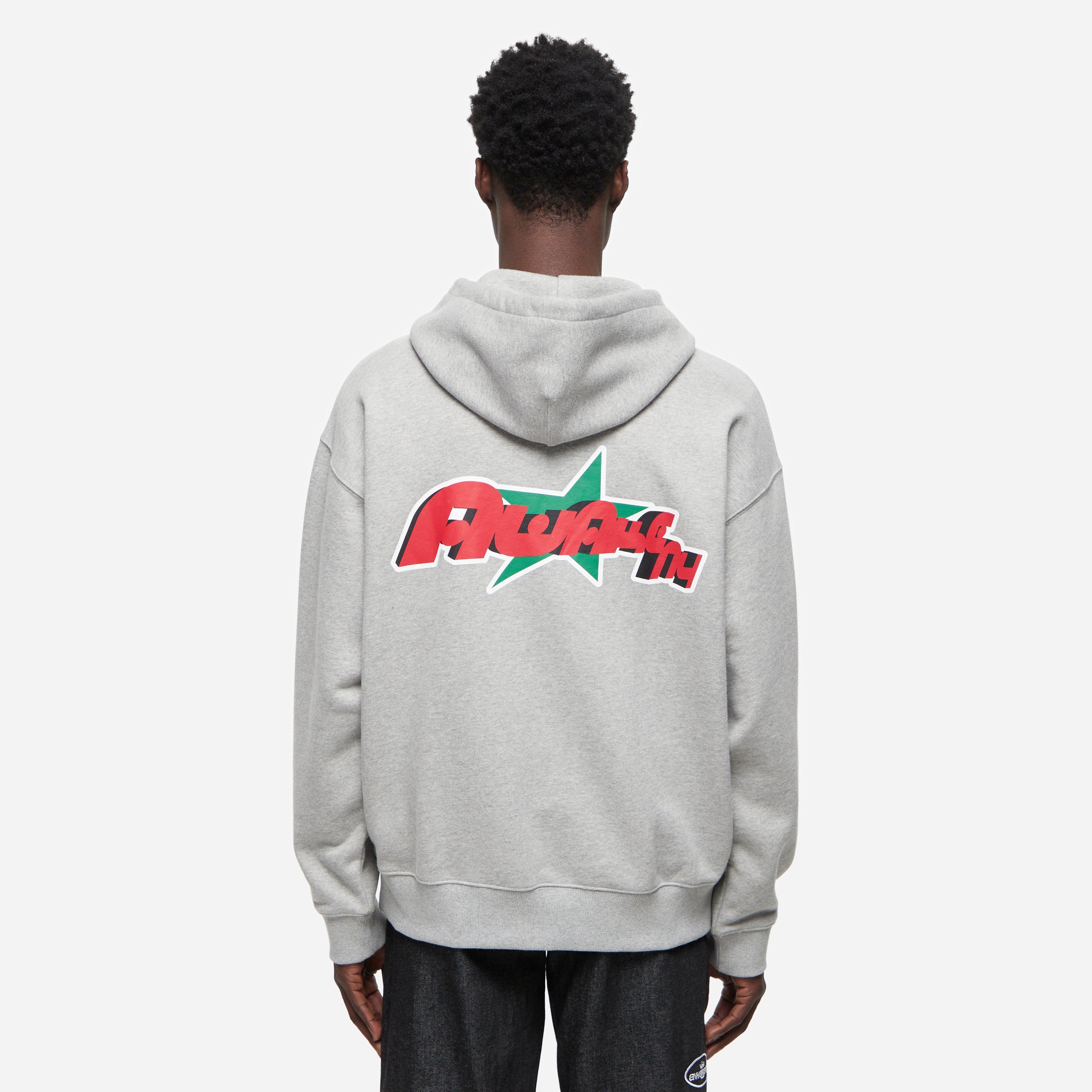 Grey – 100% cotton – Washed fabric – Two pockets – Cropped fit – Graphic prints – Model is 6’2’’ and wears a size medium.