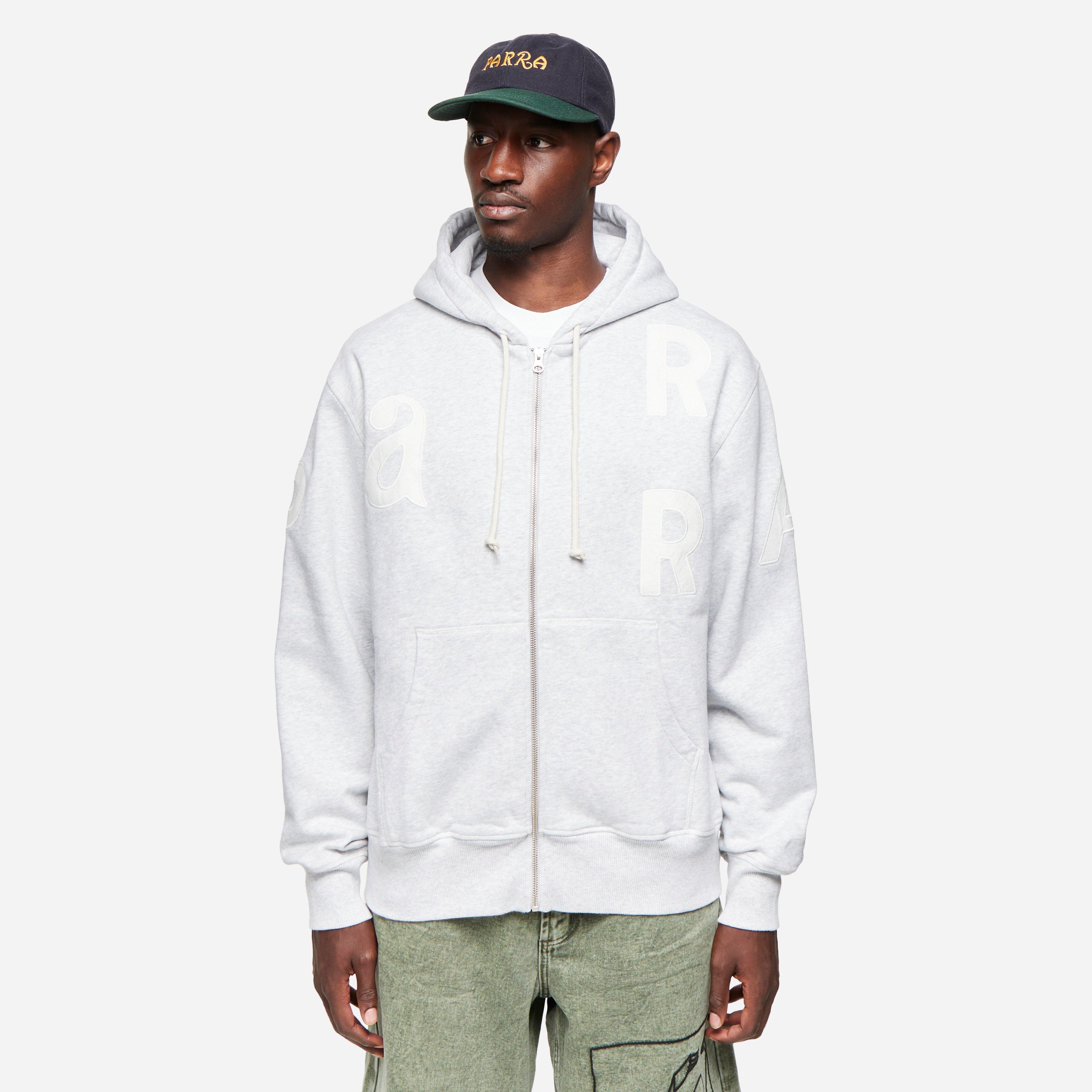 Grey - 100% cotton - 500gsm - YKK zip - Applique lettering - Made in Portugal - Model is 6'1" and wears a size medium.