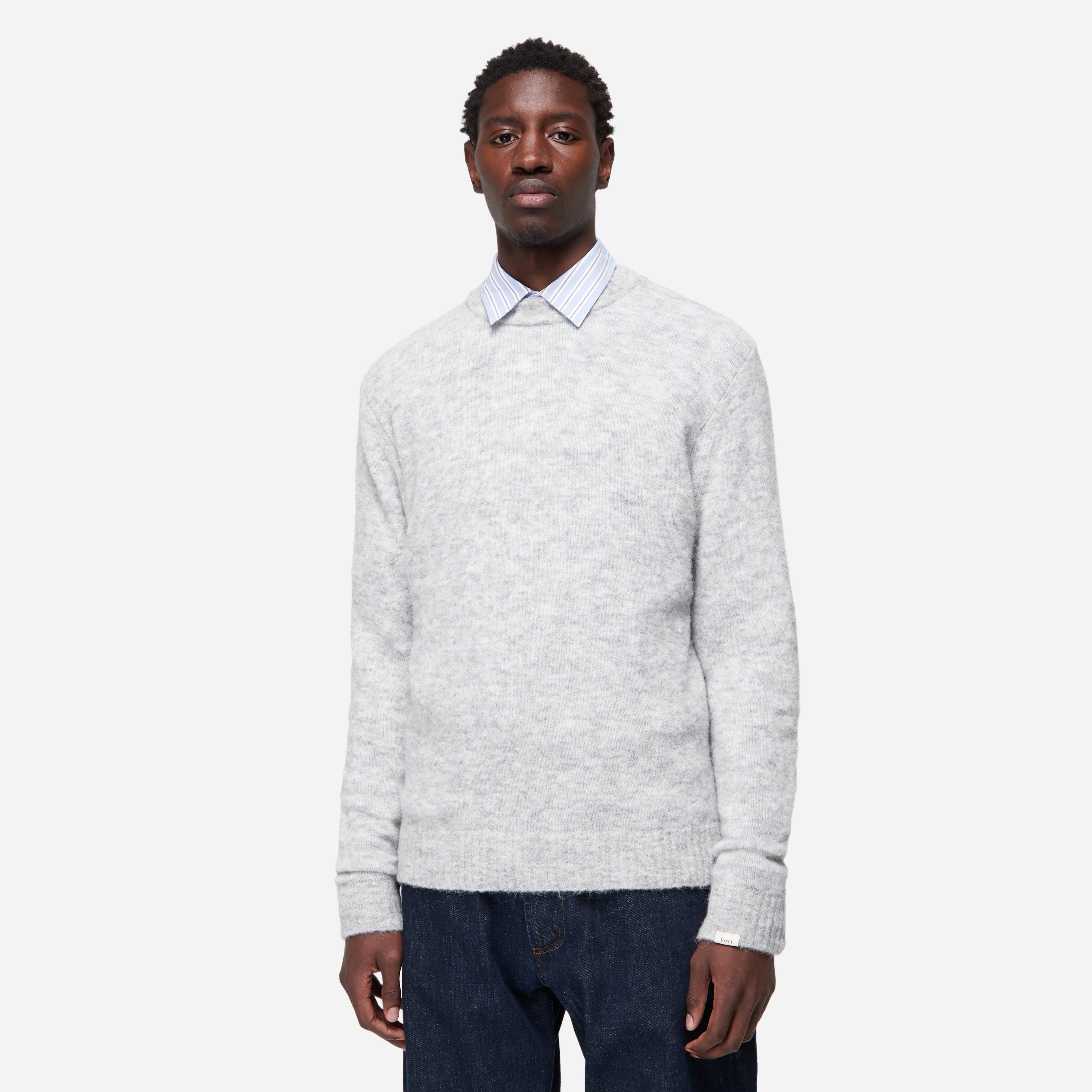 Grey – 25% alpaca/10% wool/38% polyester/31% acrylic – Brushed alpaca mix yarn – Regular fit – Model is 6’1’’ and wears a size medium.