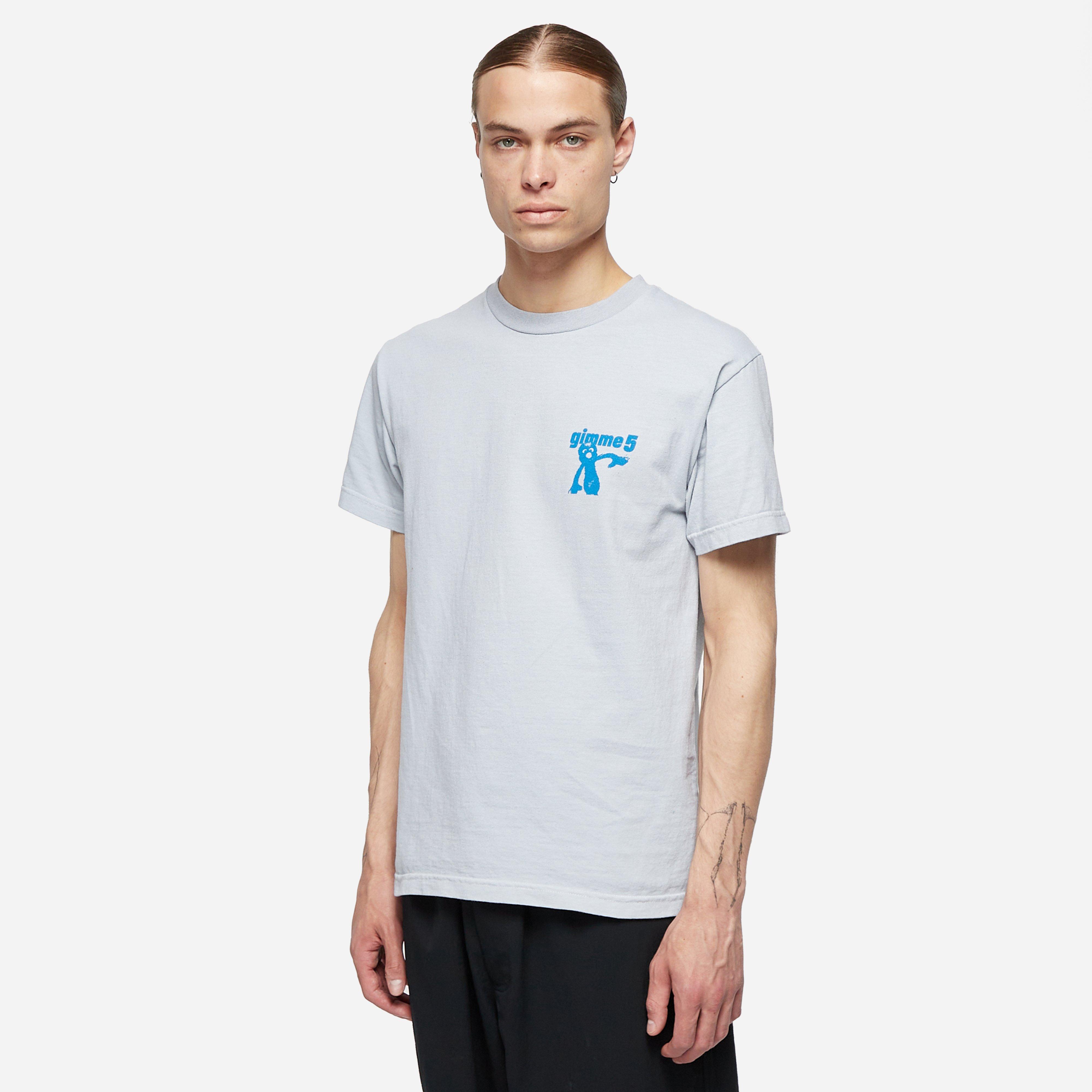 He founded his influential agency Gimme 5 in London in 1989. Since then the distribution platform has curated an ever-evolving list of labels - assisting in building authentic narratives and staying on the lookout for emerging scenes. Gimme 5's in-line T-Shirt range is another layer to its strong cultural output - touching on different references. Grey - 100% cotton - Printed graphic - Regular fit take your normal size - Model is 6'1" and wears a medium."