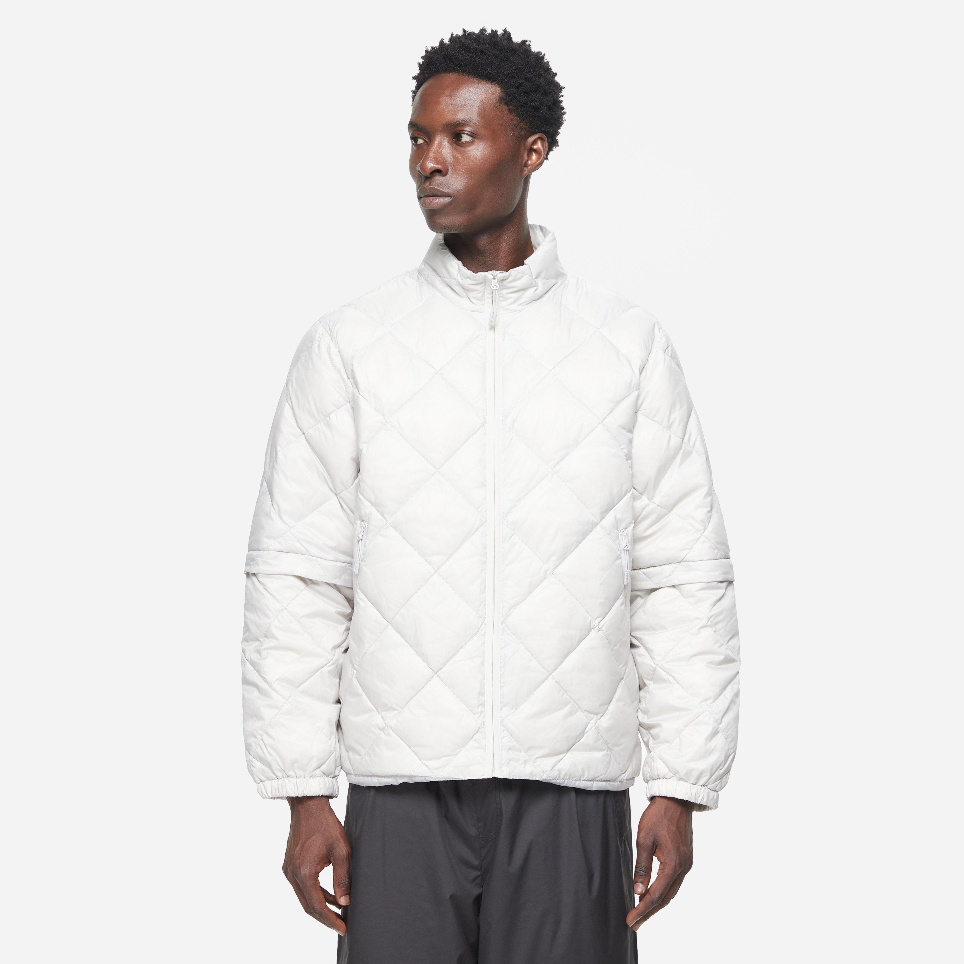 It's seen in practical attire made for those who blend urban living with outdoor exploration. Grey - 100% polyester - Filling 90% duck down, 10% duck feathers - Water-proof (Grade 3), wind-proof, and down-proof nylon ripstop fabric - YKK zip - Detachable sleeves - Elastic-bound armholes -Adjustable side hem - Down filled patch hand pockets - Model is 6'2" and wears a size medium.