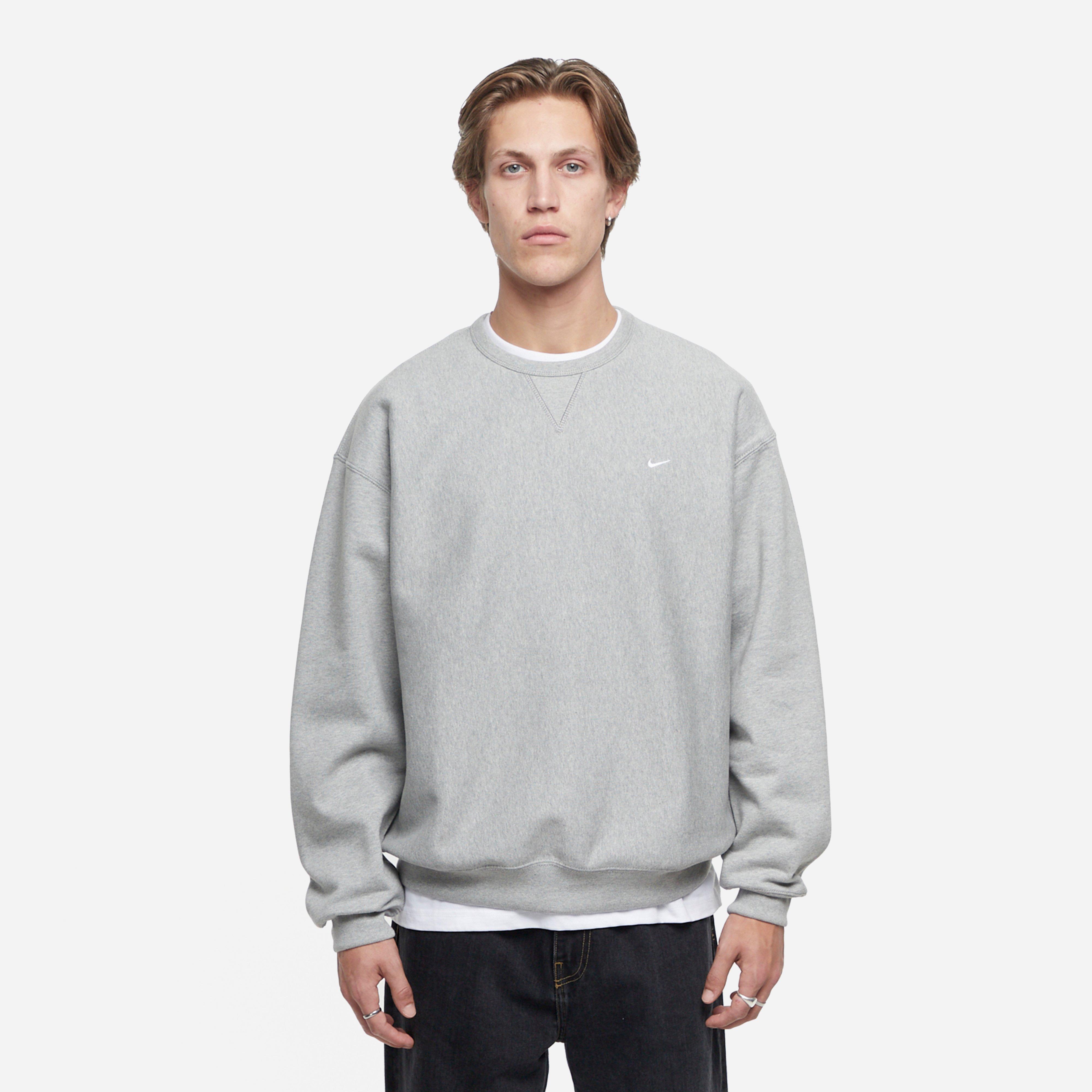 Nike's Solo Swoosh Fleece Crew Sweatshirt is a trademark layer unbound to any particular season and is composed of fleecy fabric with roomy contouring.