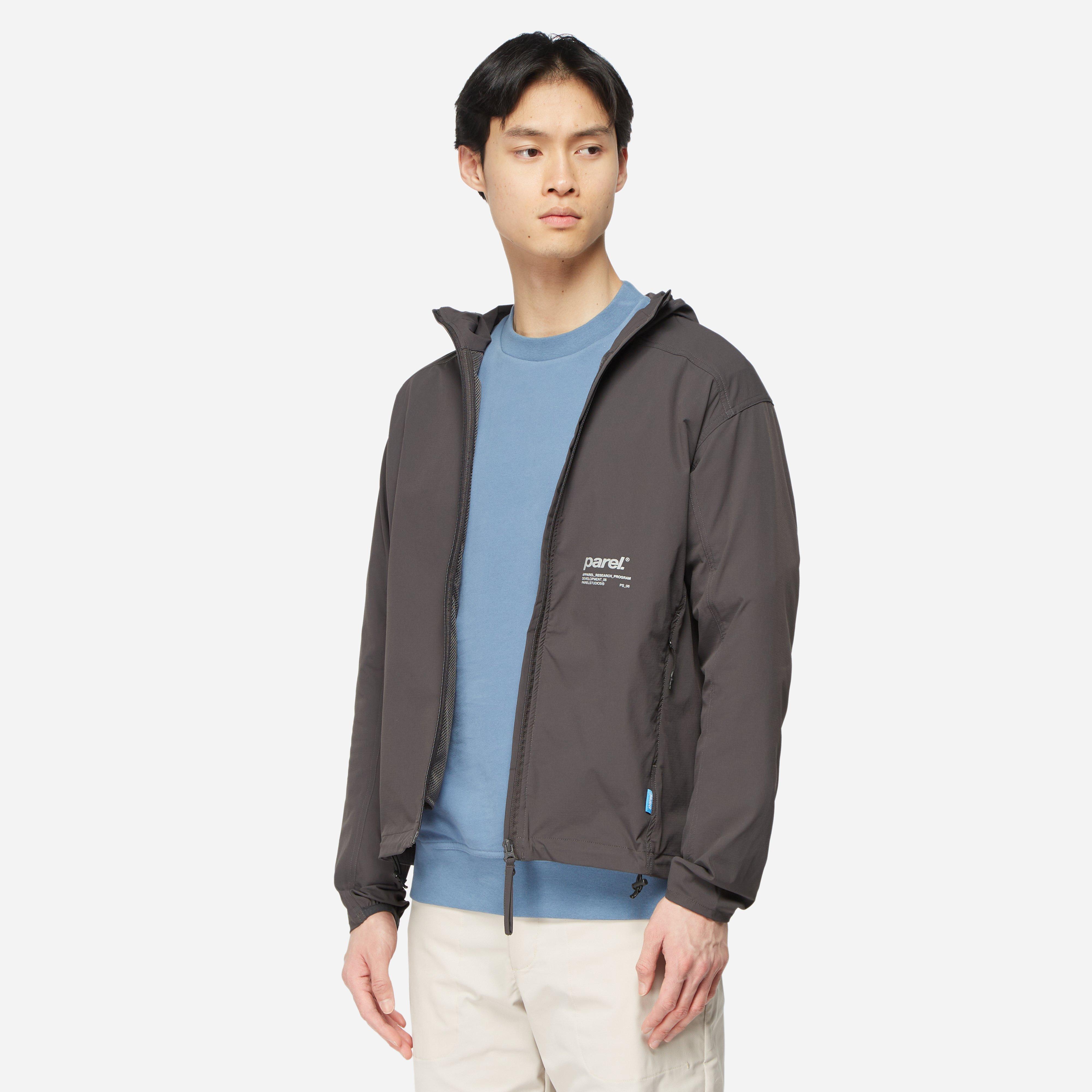 Grey - 90% nylon, 10% spandex - Zipped pockets - Adjustable waist and hood - Reflective branding - Regular fit, take your normal size - Model is 6'1" and wears a medium.
