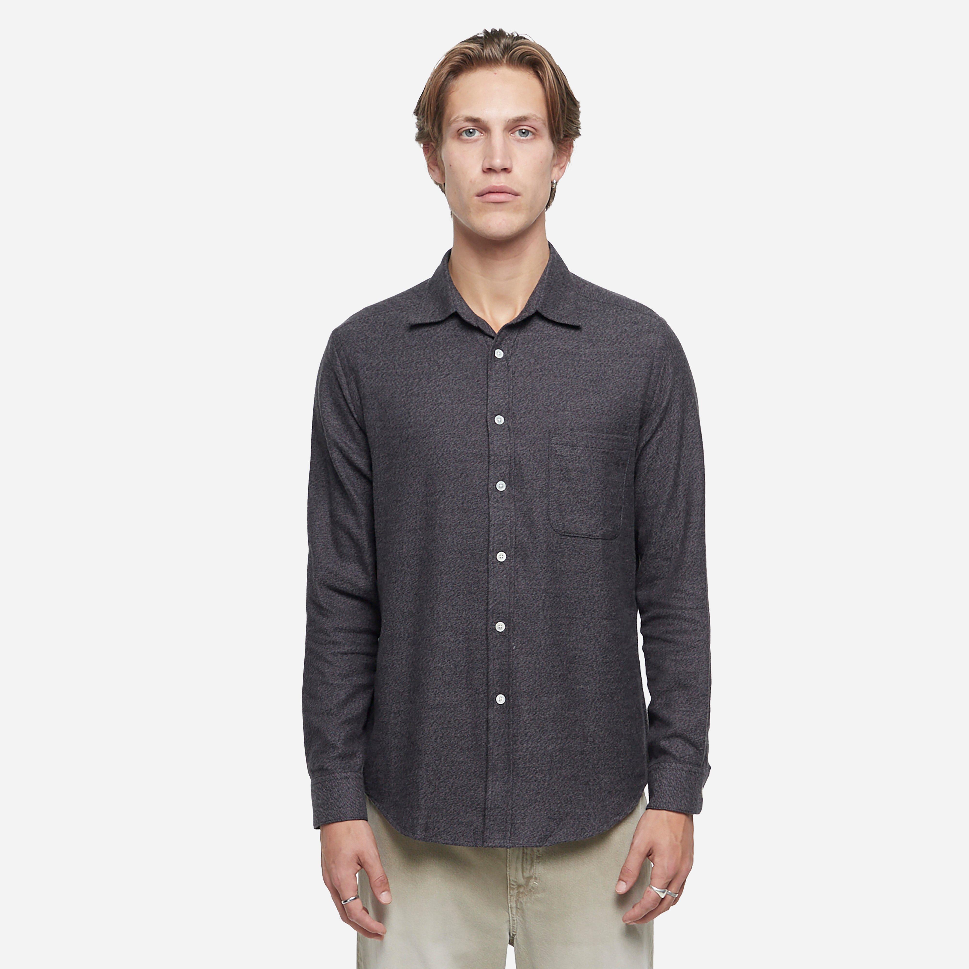 Grey - 100% cotton - Made in Portugal - Morth of Pearl buttons - Chest pocket - Model is 6'2.5" and wears a size medium